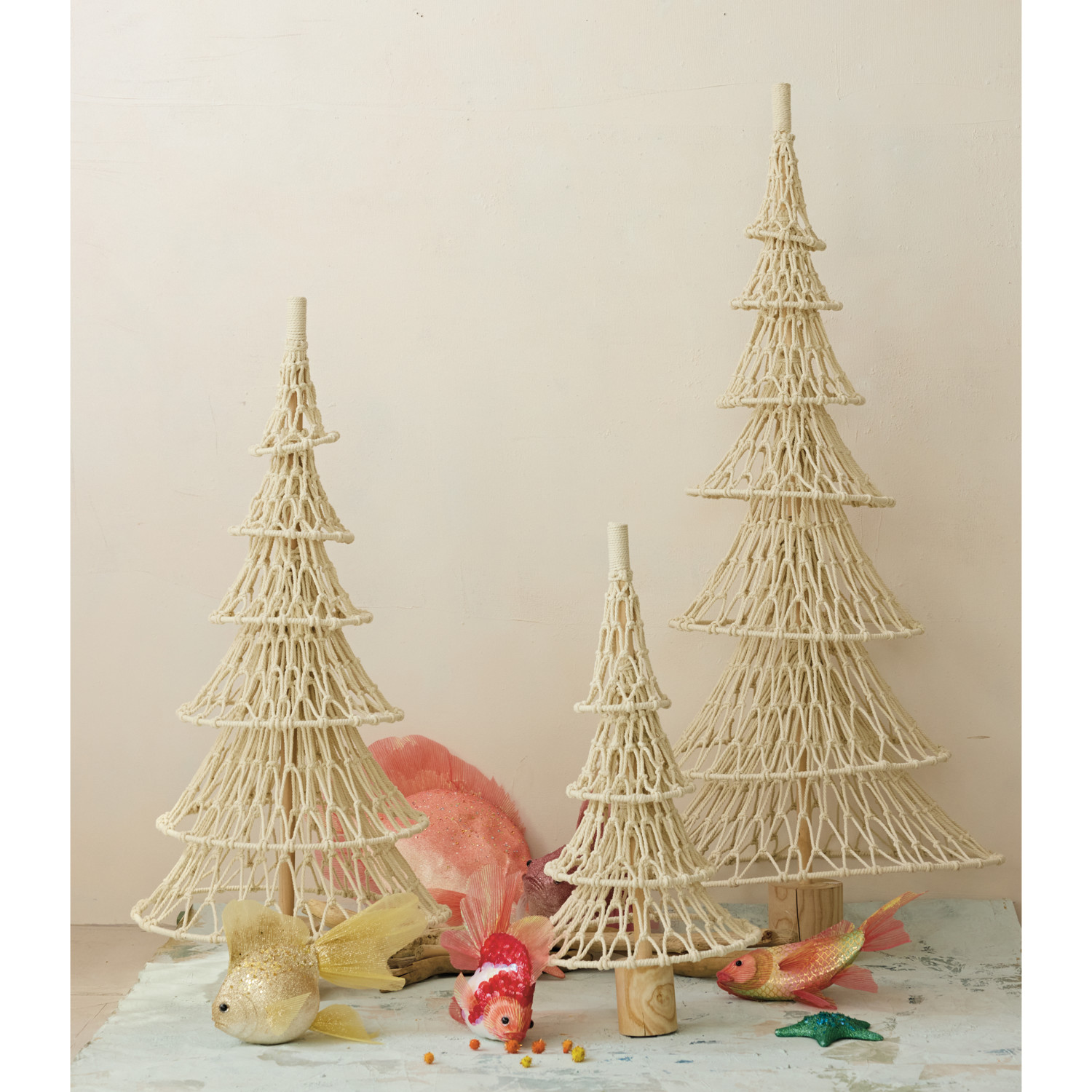 Fabric Rope Net & Birch Wood Tree, Natural, KD