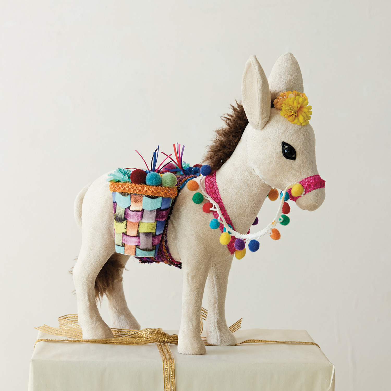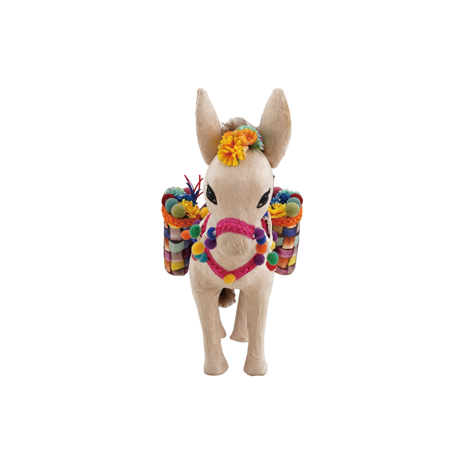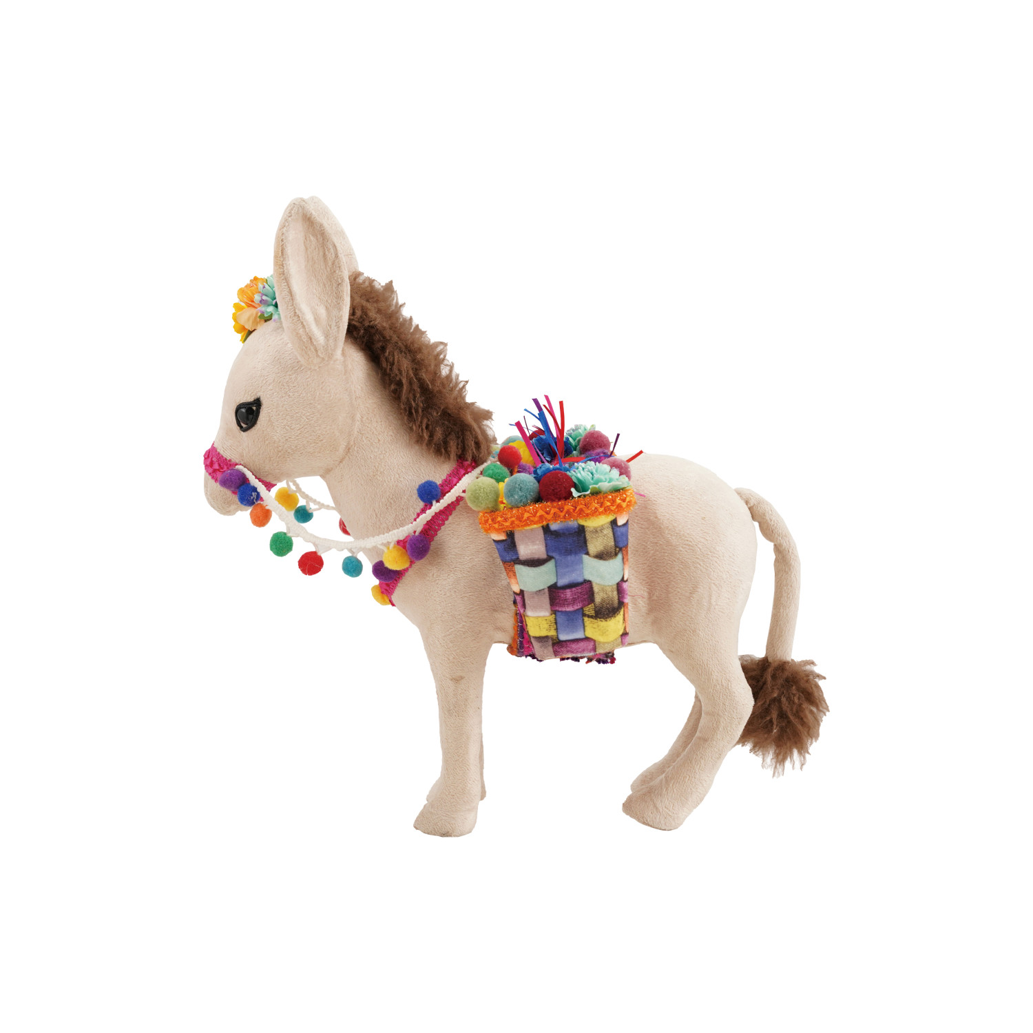 Catalog Name: 15"L x 8-1/4"W x 15-3/4"H Foam & Fabric Donkey w/ Saddle Baskets & Pom Poms, Multi Color