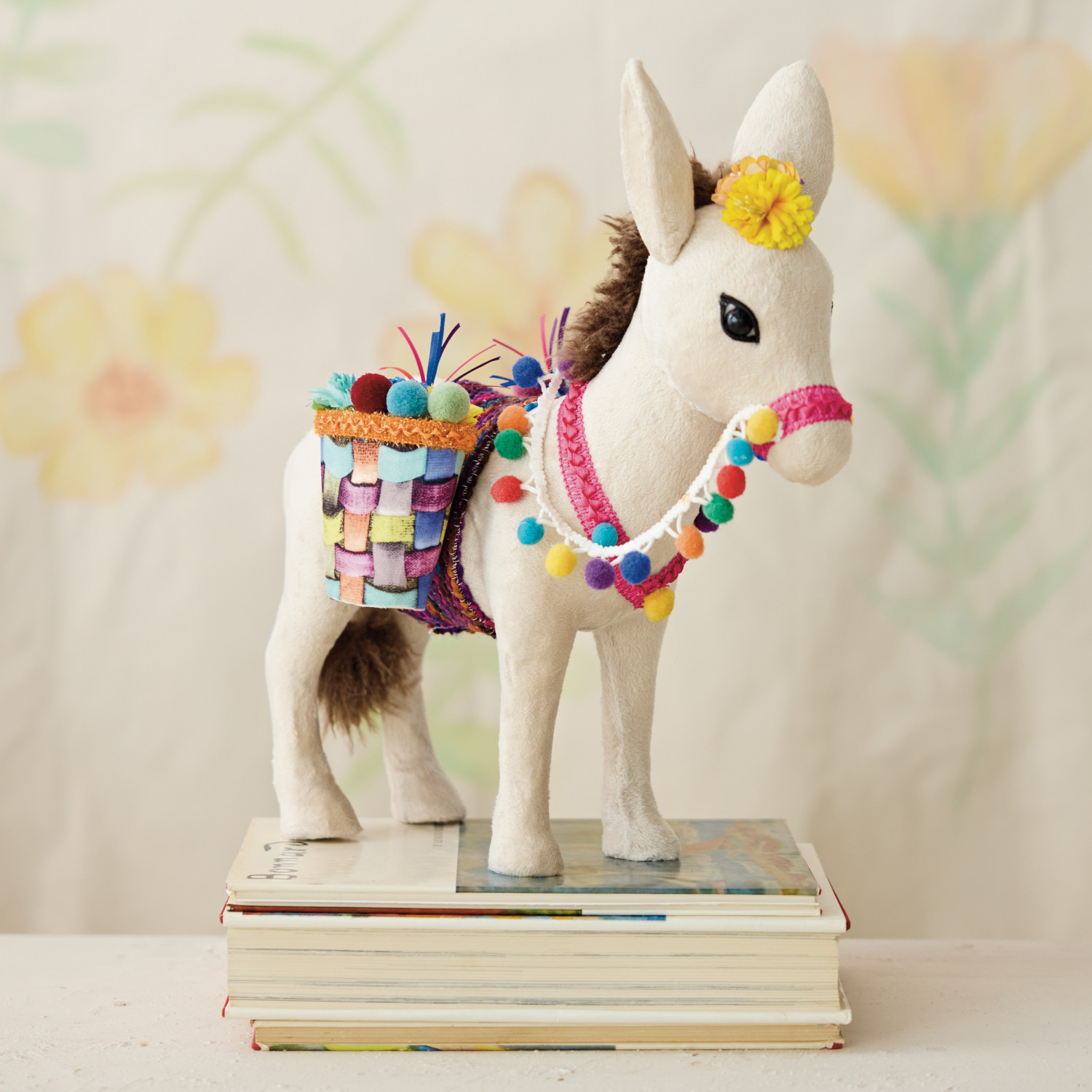 Foam & Fabric Donkey with Saddle Baskets & Pom Poms