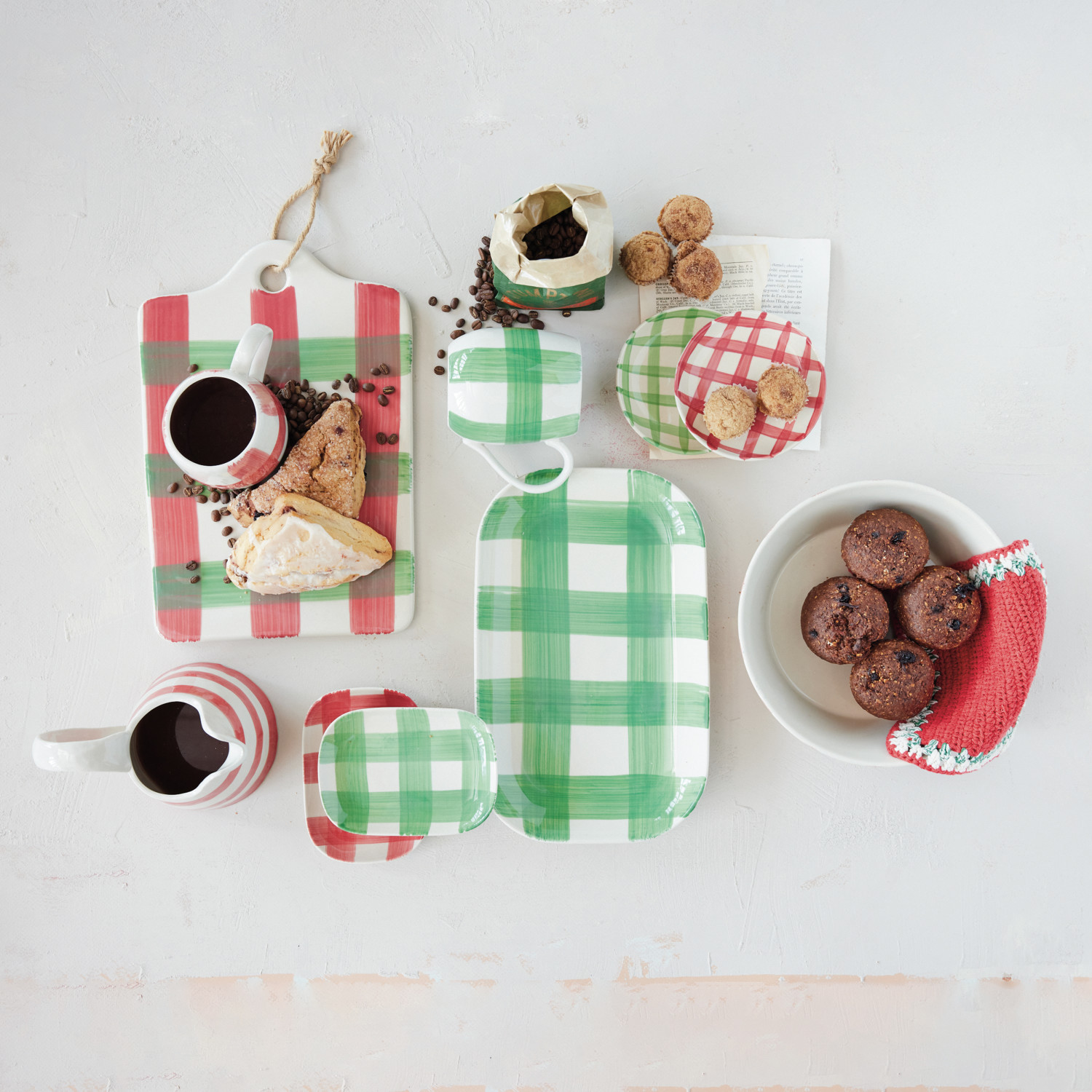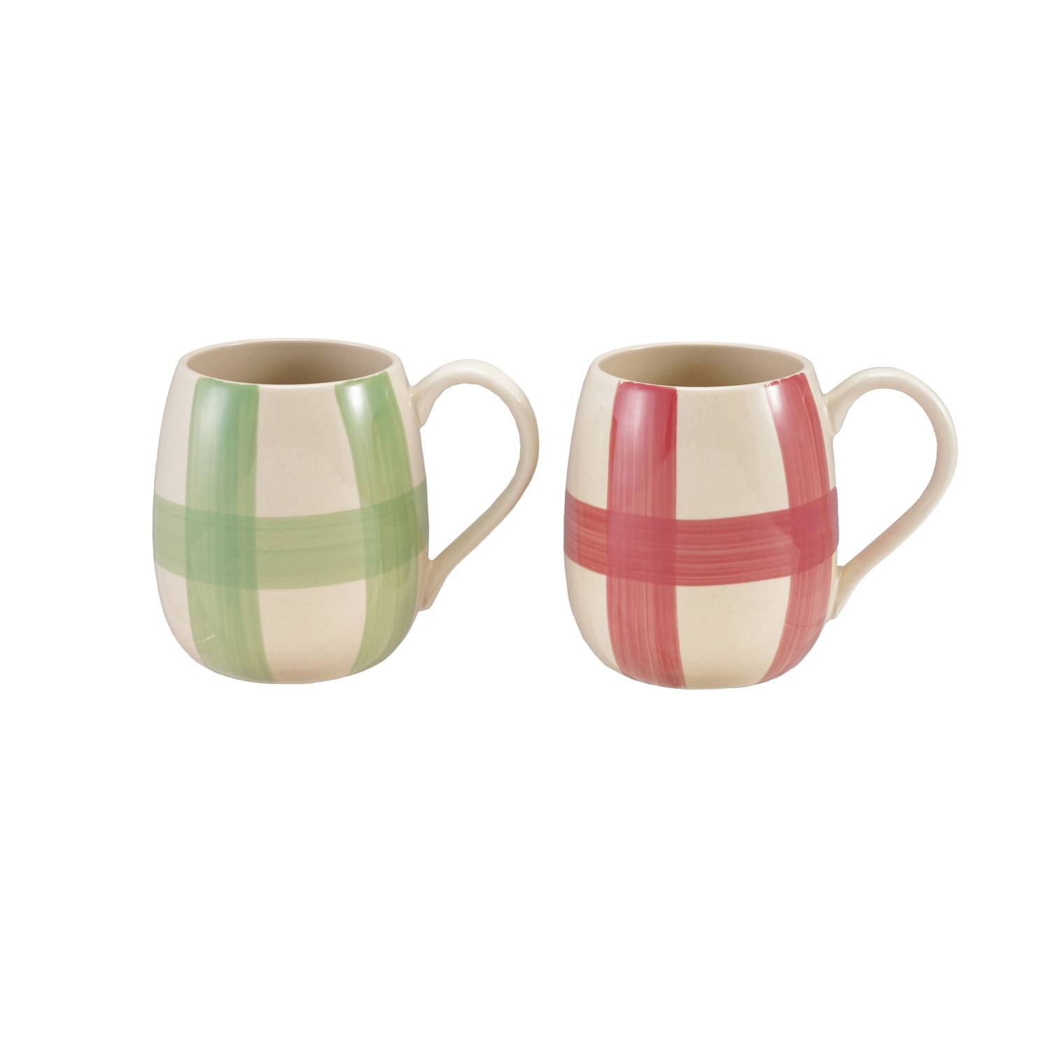 16 oz. Hand-Painted Stoneware Mug with Plaid Pattern, 2 Colors (Each One Will Vary)