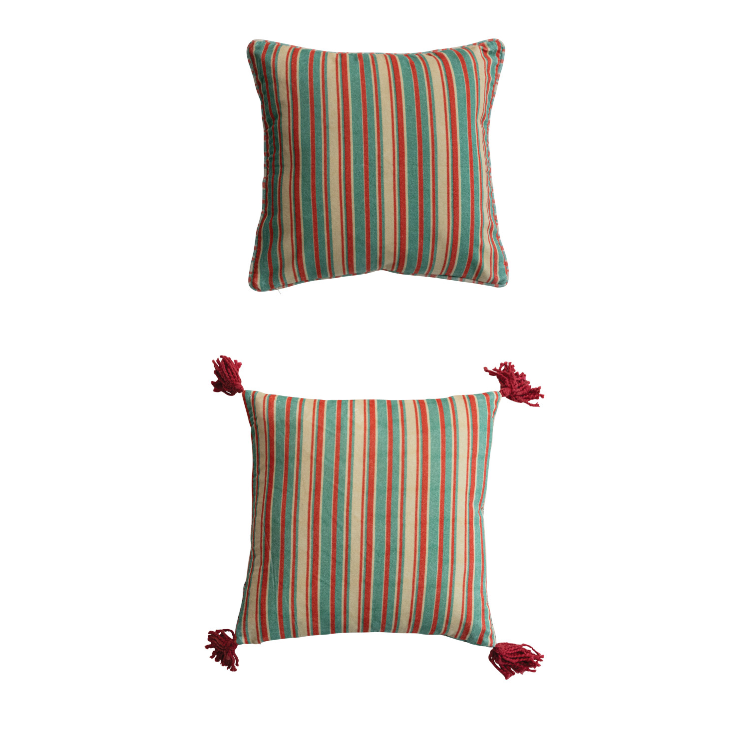 18" Square Cotton Velvet Pillow with Piping/Tassels & Striped Back, 2 Styles ©