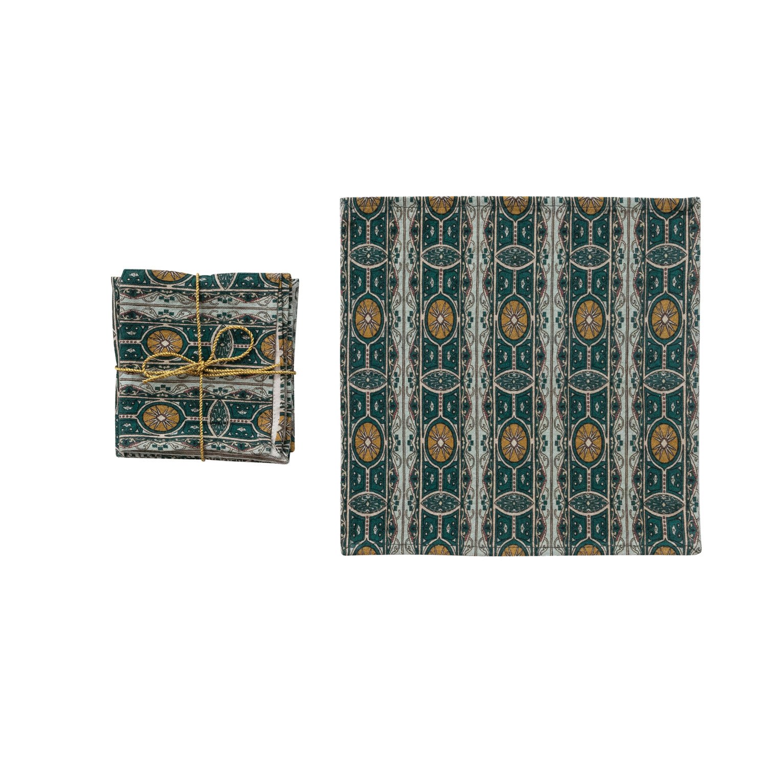 Cotton & Linen Printed Cocktail Napkins with Pattern, Set of 4 Tied with Gold Cord ©