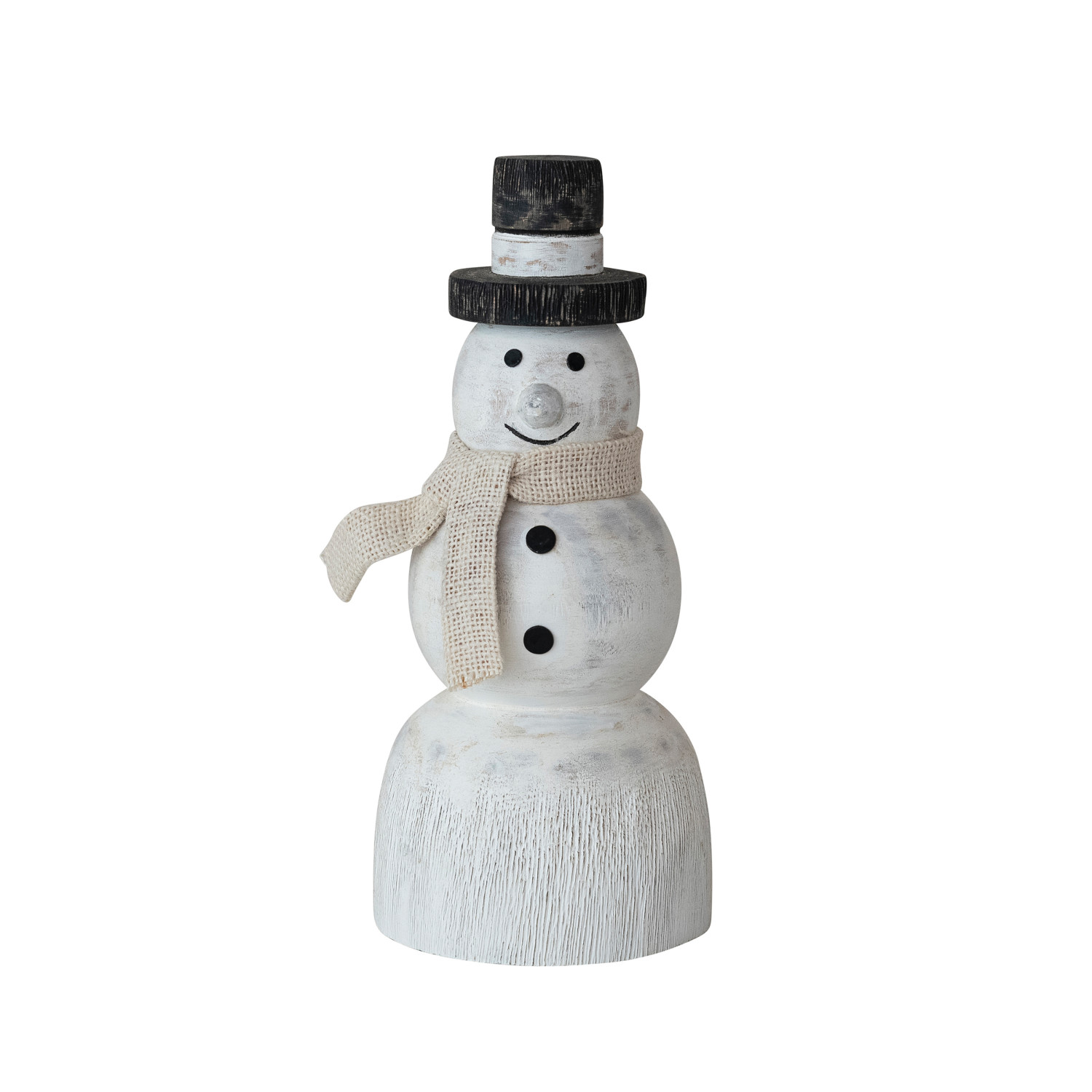 Handmade Mango Wood Snowman with Top Hat & Scarf, White, Black & Natural
