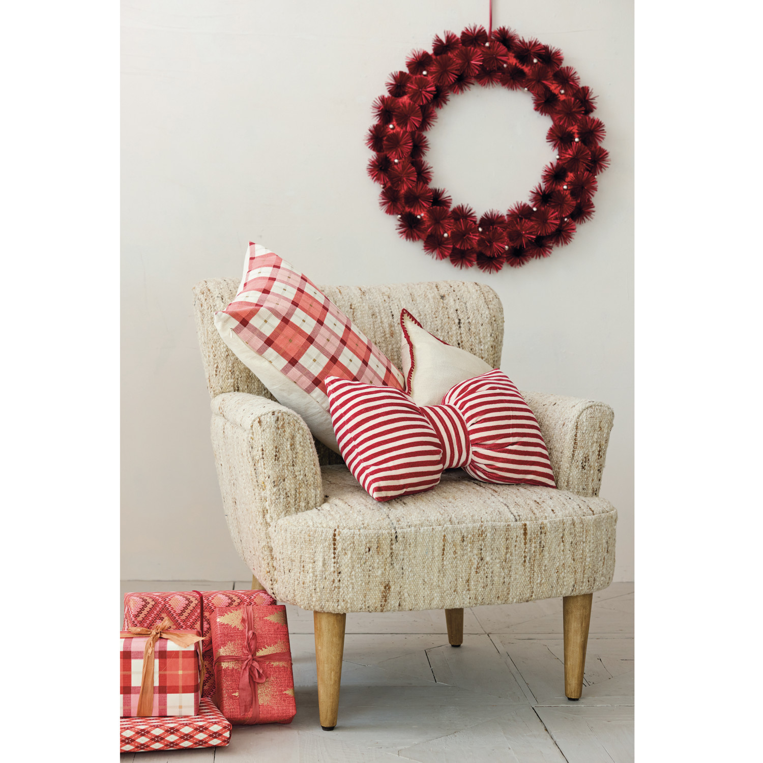 Catalog Name: 12" Square Cotton Printed Pillow w/ Gold Foil & Contrasting Stitched Edge, Natural & Red