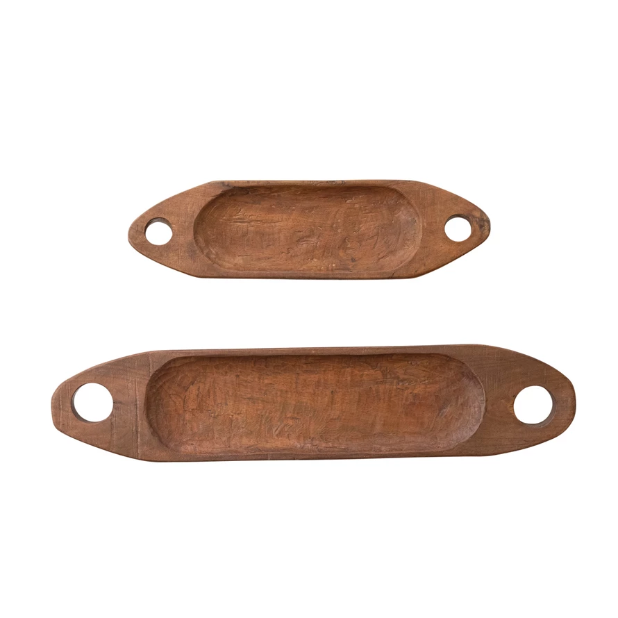 Catalog Name: 30"L x 7"W & 21"L x 6"W Decorative Reclaimed Wood Trays w/ Handles, Natural, Set of 2
