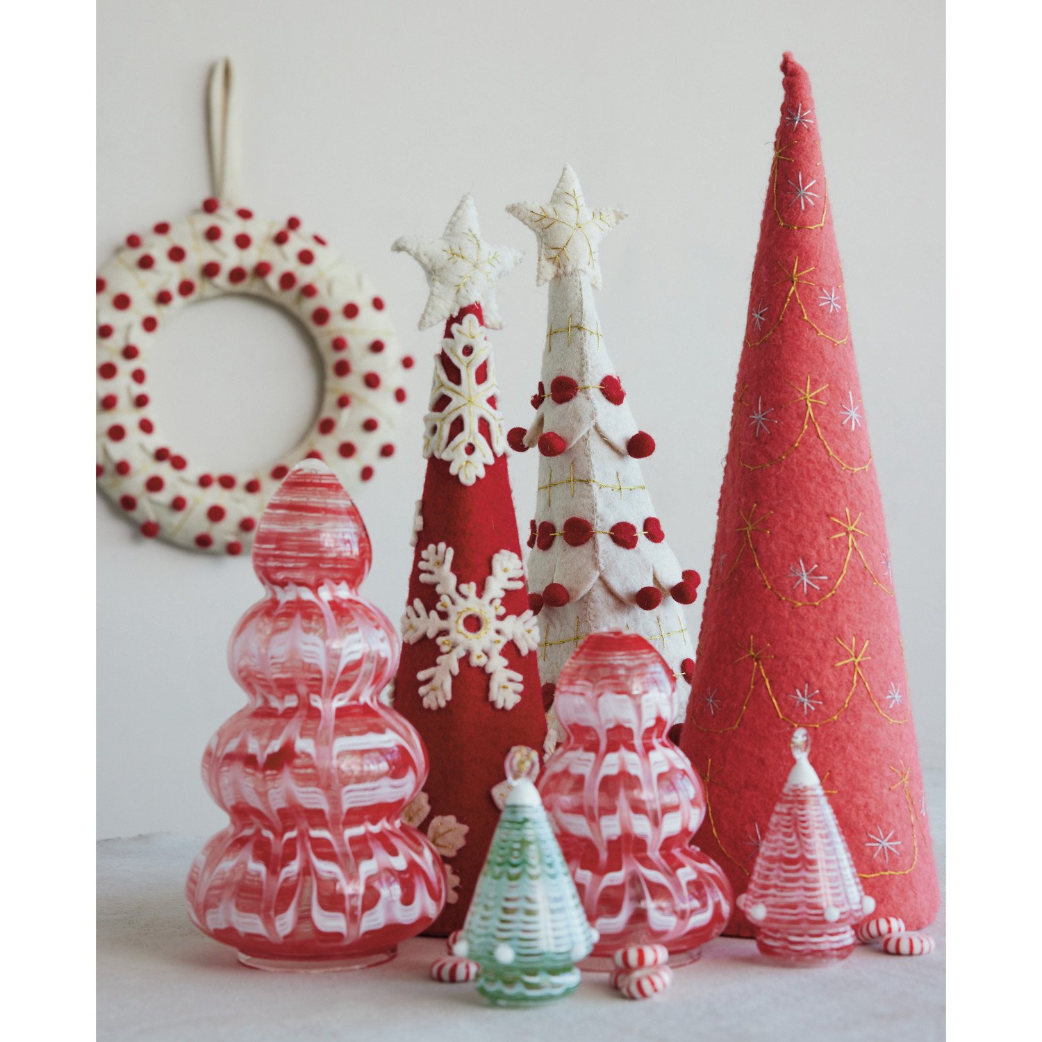 Hand-Blown Art Glass Tree, Red & White (Each One Will Vary)