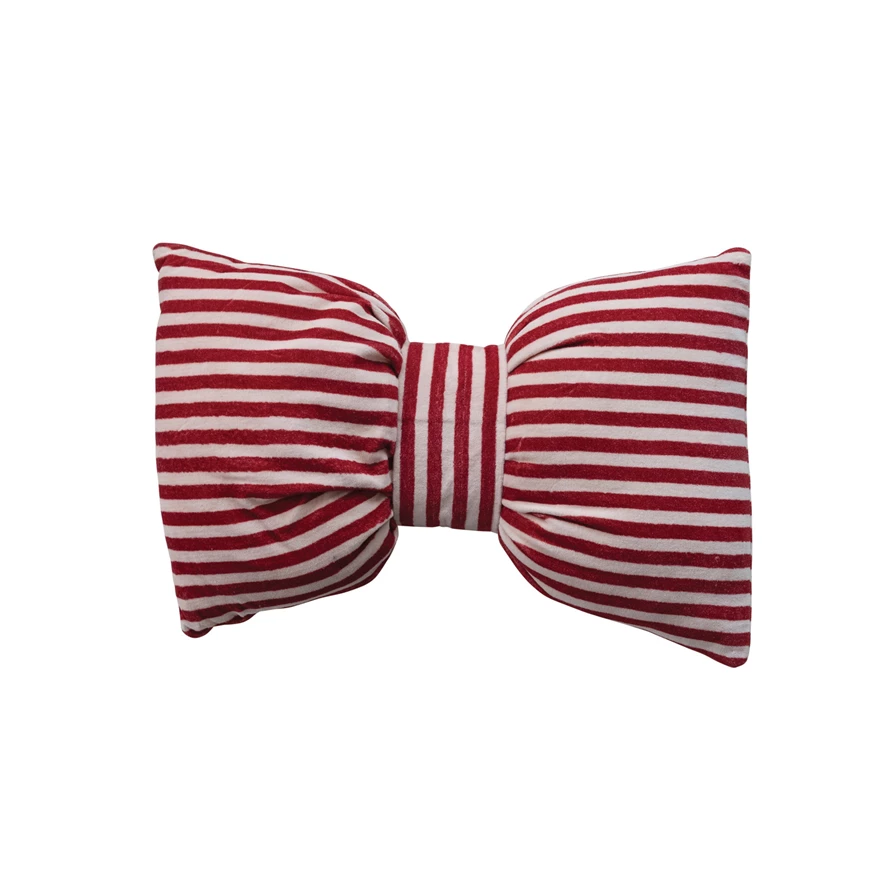 Catalog Name: 18"L x 4"H Cotton Velvet Bow Shaped Striped Lumbar Pillow, Red & Cream Color