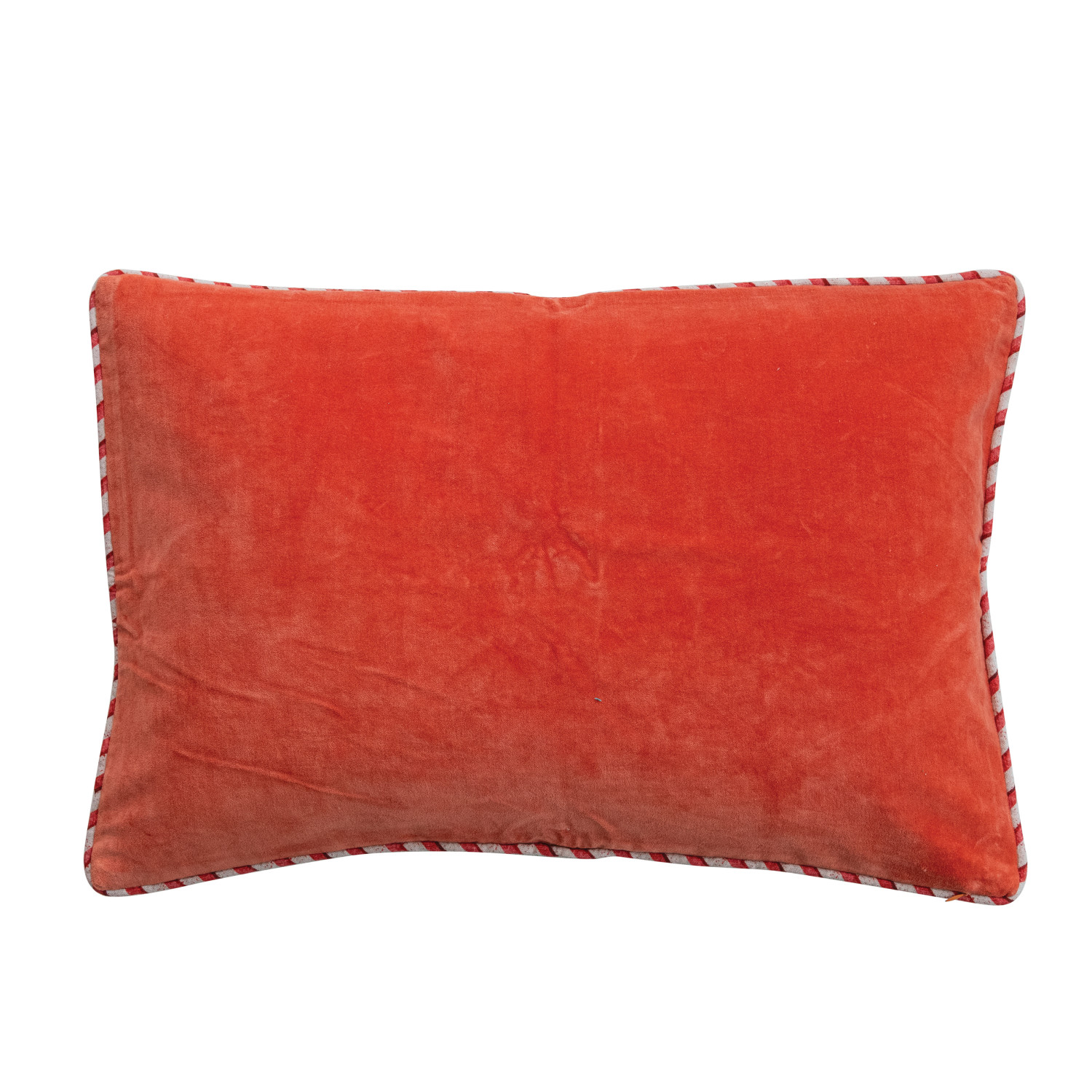 Cotton & Linen Lumbar Pillow with Embroidery, Striped Piping & Velvet Back ©