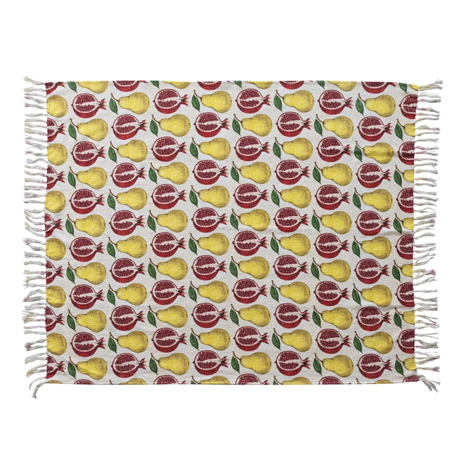 Cotton Printed Throw with Fruit Pattern & Fringe ©