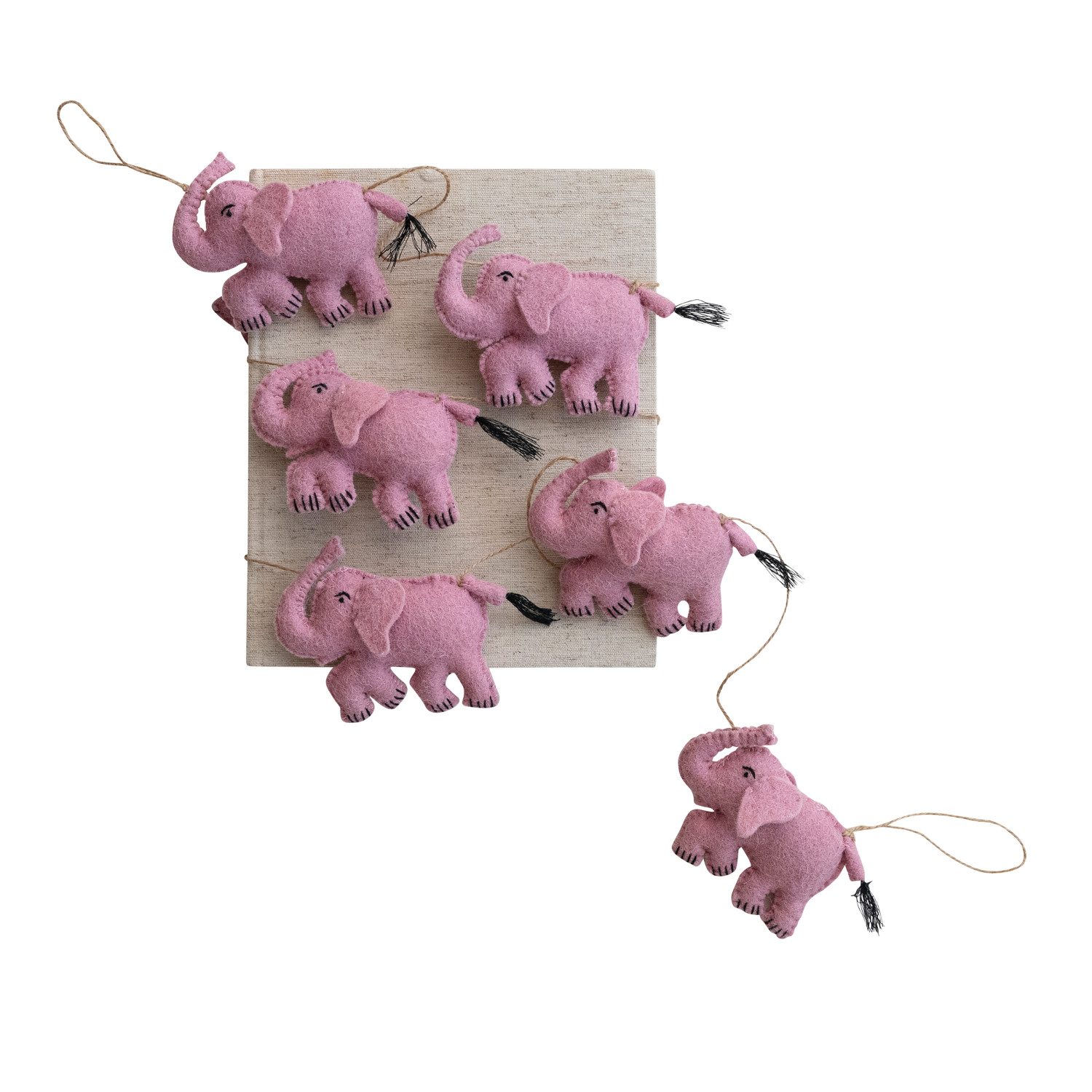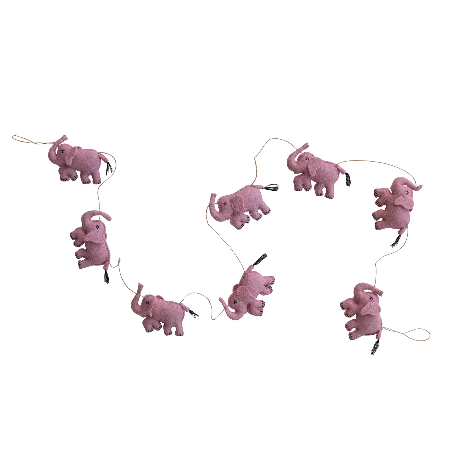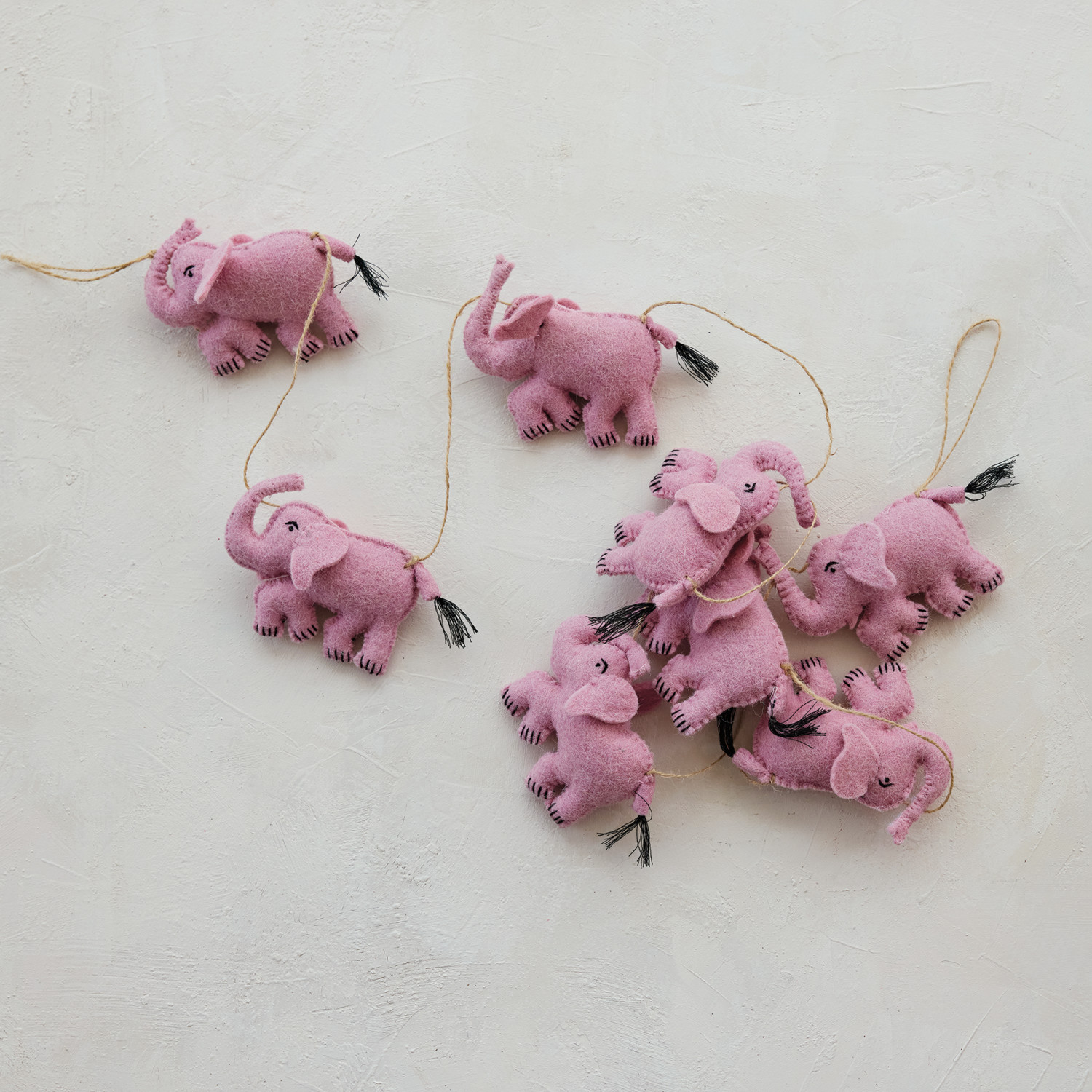 Handmade Wool Felt Pink Elephant Garland with Jute Cord ©