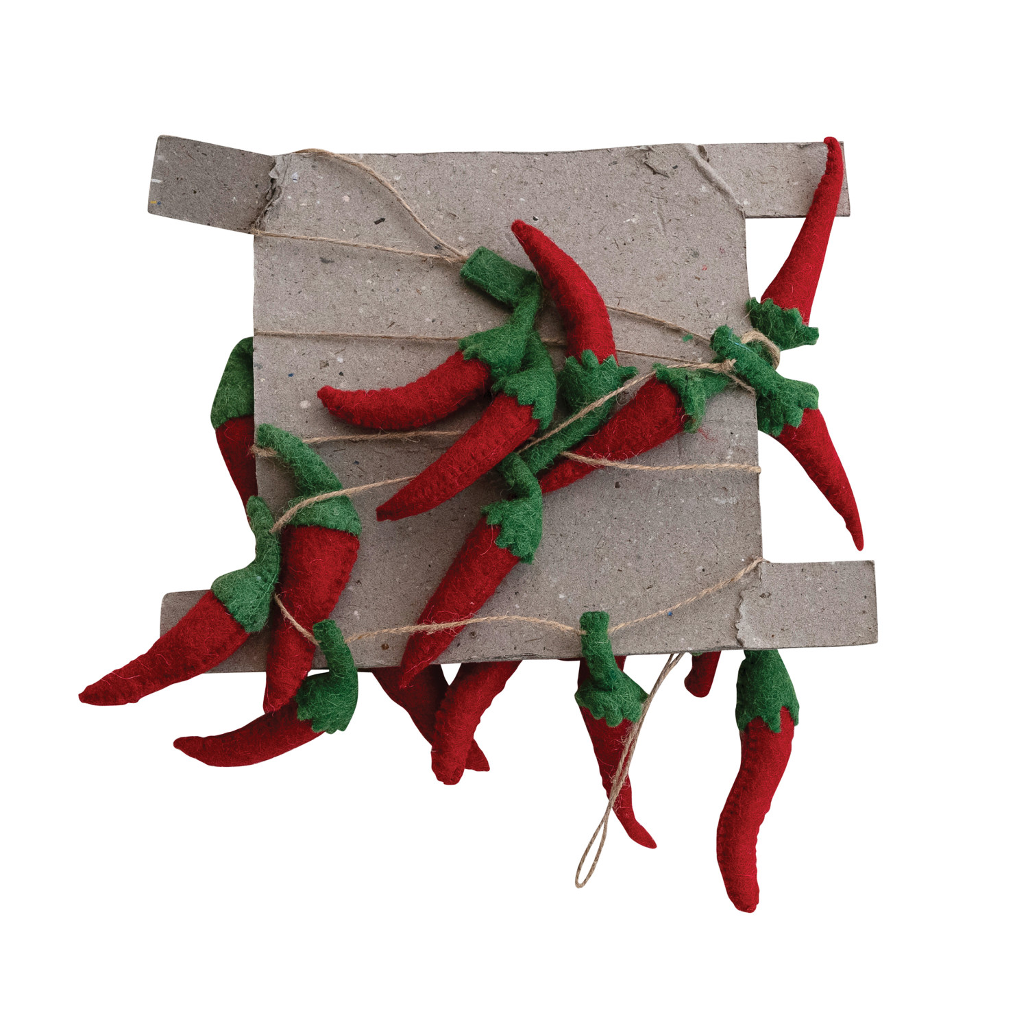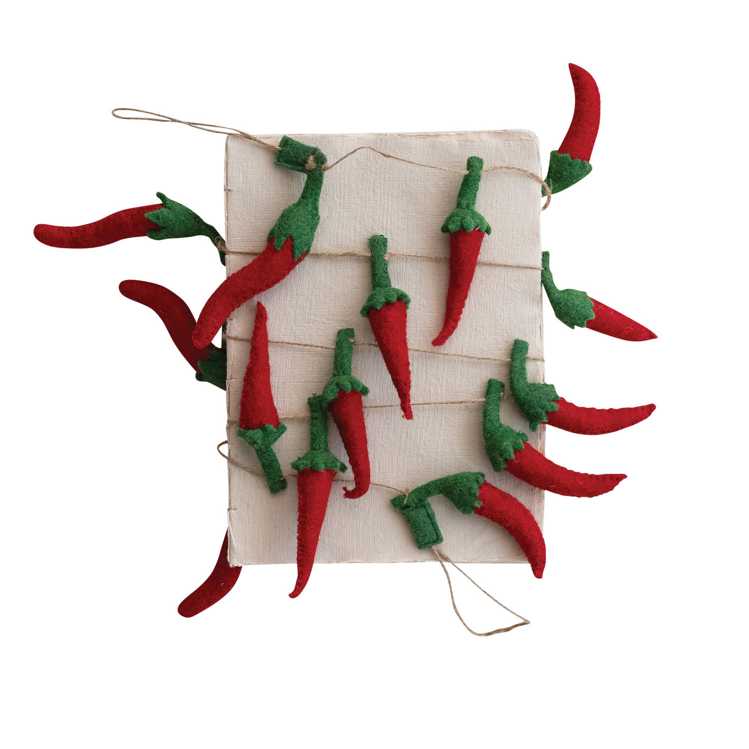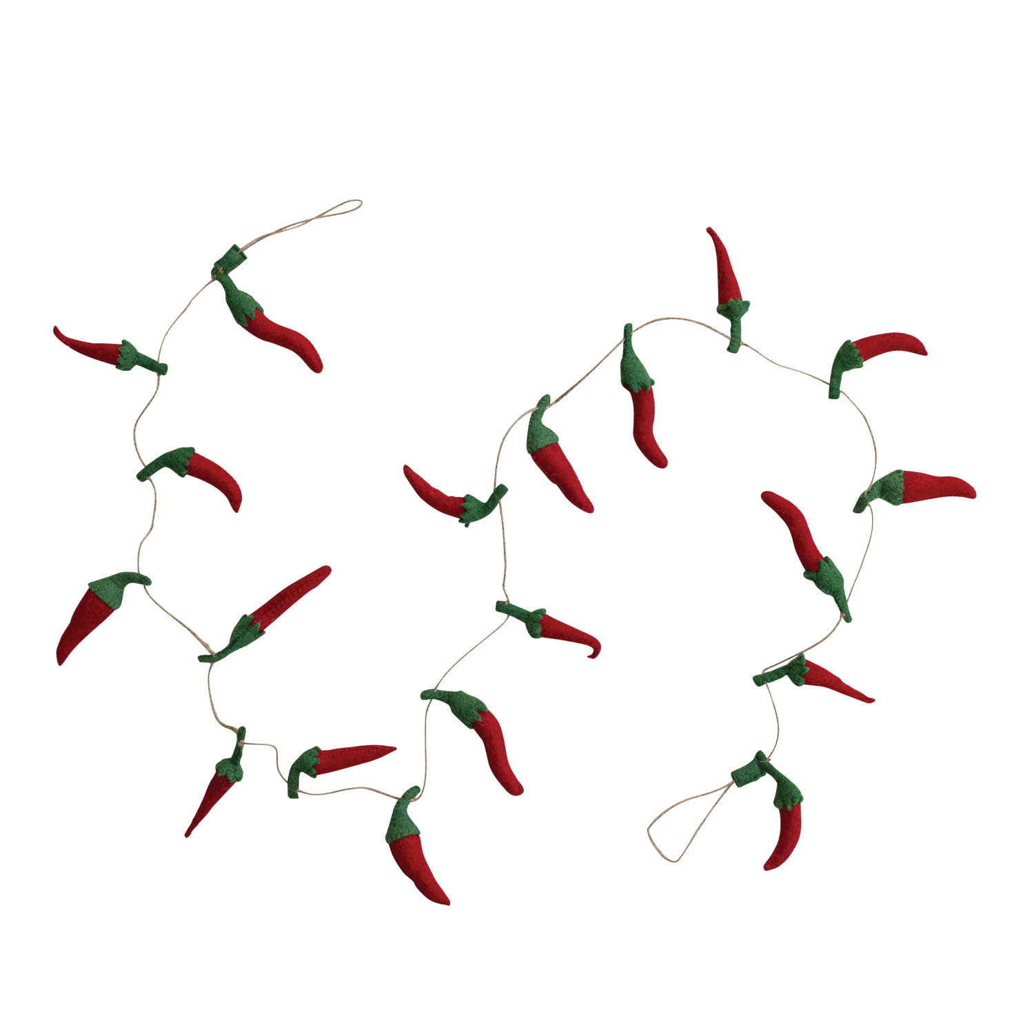 Catalog Name: 72"L x 5"H Handmade Wool Felt Chili Pepper Garland, Red & Green