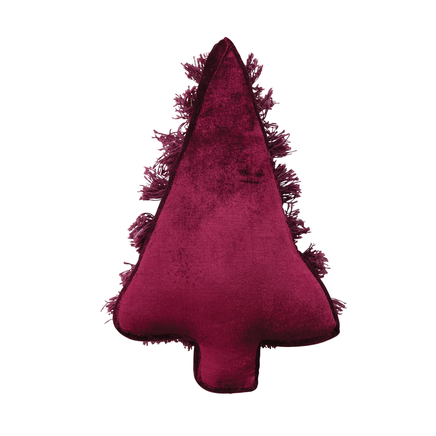 Catalog Name: 8"L x 13"H Cotton Velvet Tree Shaped Pillow w/ Fringe & Metallic Gold Thread Embroidery, Burgundy