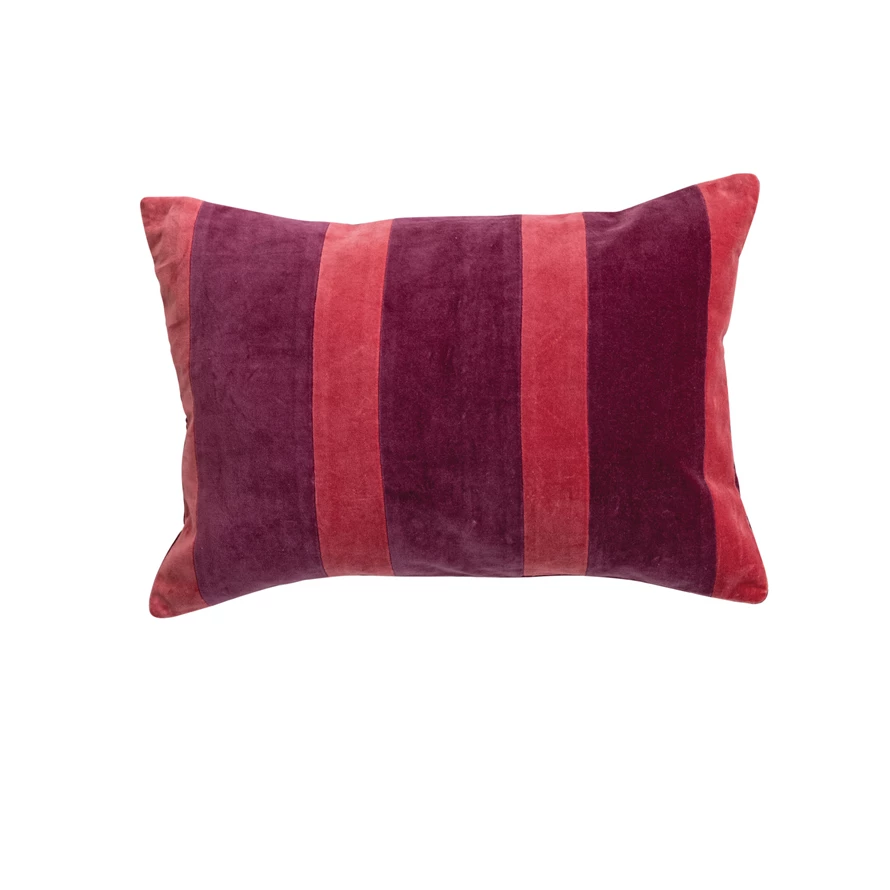 Cotton Velvet Striped Lumbar Pillow, Burgundy & Rose Color