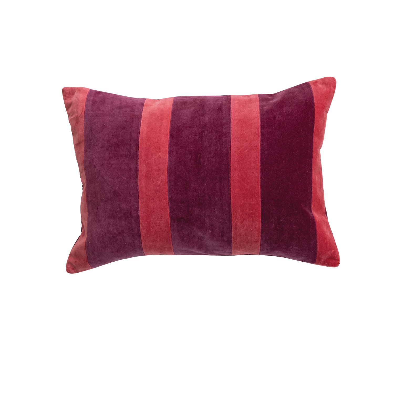 Catalog Name: 20"L x 14"H Cotton Velvet Striped Lumbar Pillow, Burgundy & Rose Color
