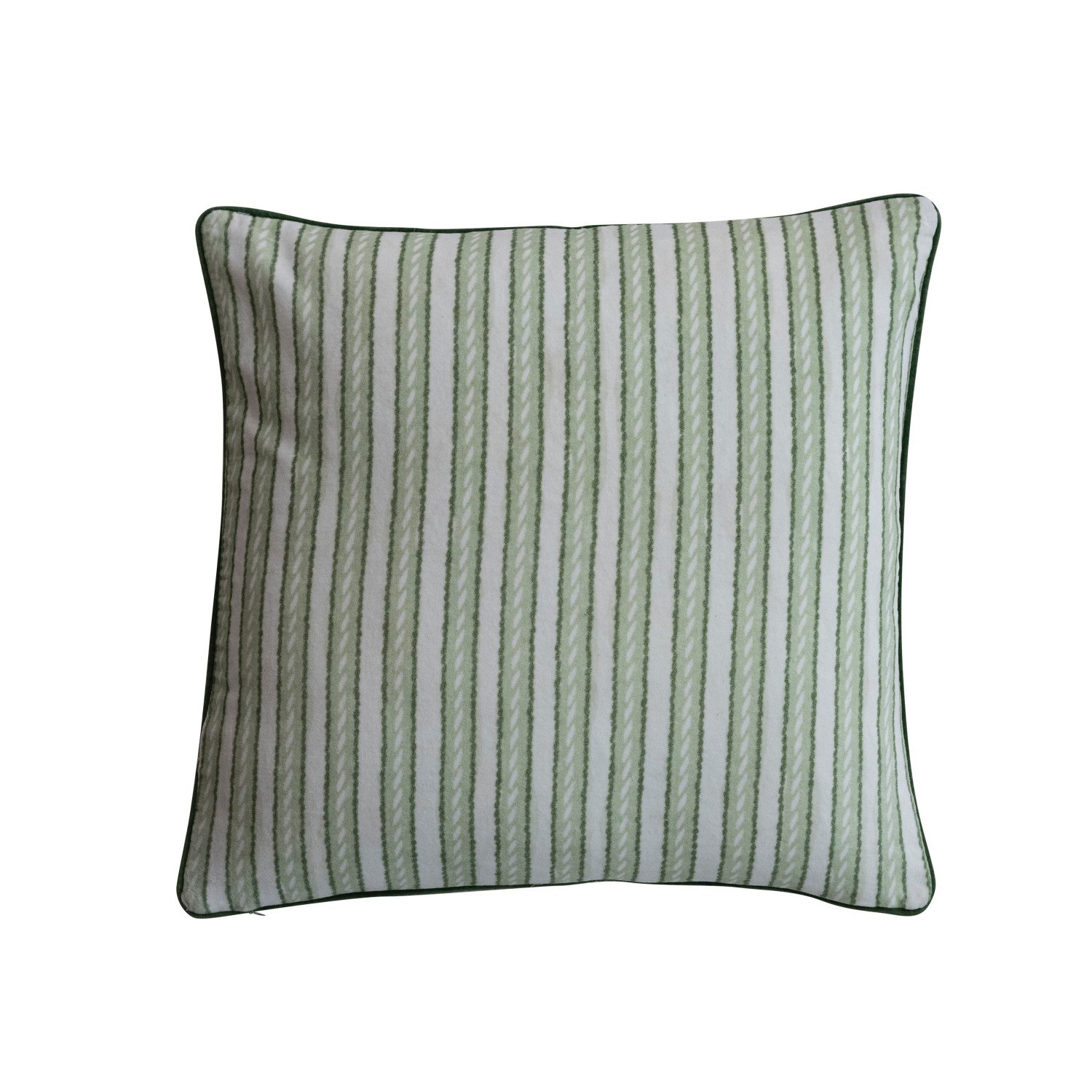 20" Square Cotton Printed Pillow with Embroidery, Piping & Cotton Velvet Striped Back ©