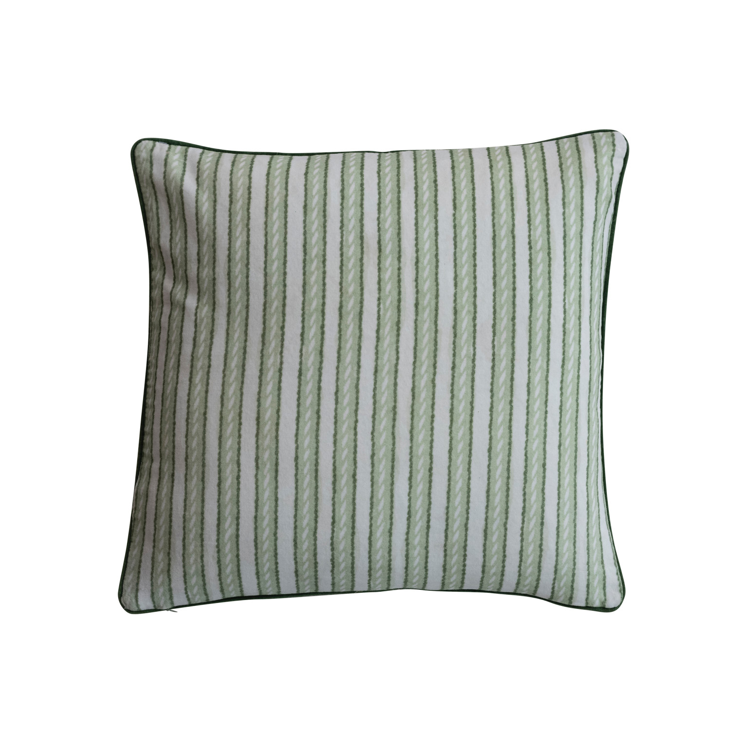 Catalog Name: 20" Square Cotton Printed Pillow w/ Angel, Stars, Embroidery, Piping & Cotton Velvet Striped Back "Holiday", Green & Cream Color ©
