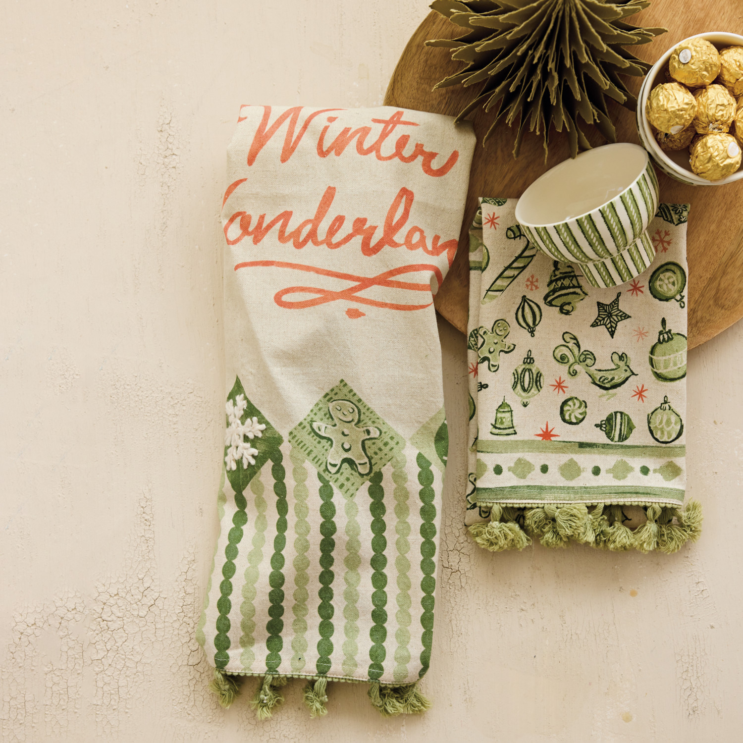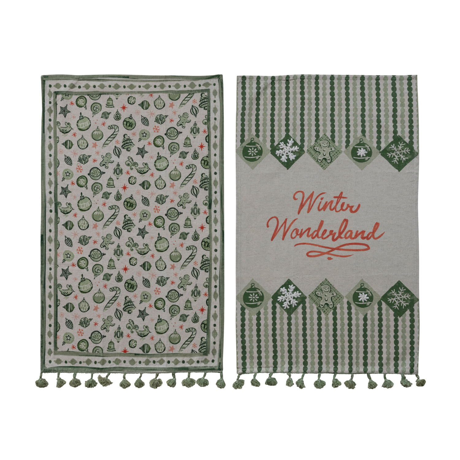Cotton & Linen Printed Tea Towel with Holiday Pattern/Saying & Tassels, 2 Styles ©