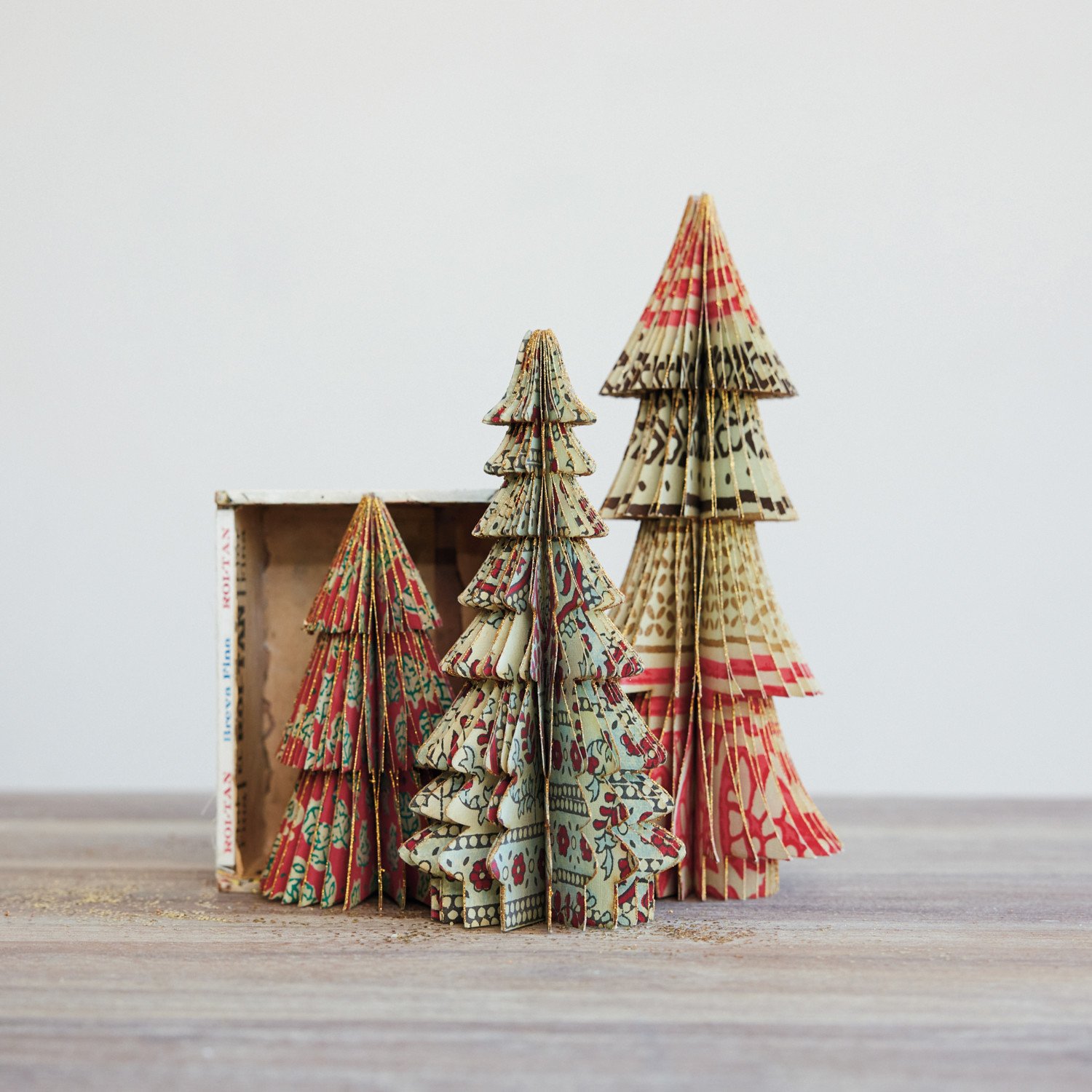 Handmade Recycled Block Printed Paper Folding Honeycomb Tree with Vintage Pattern