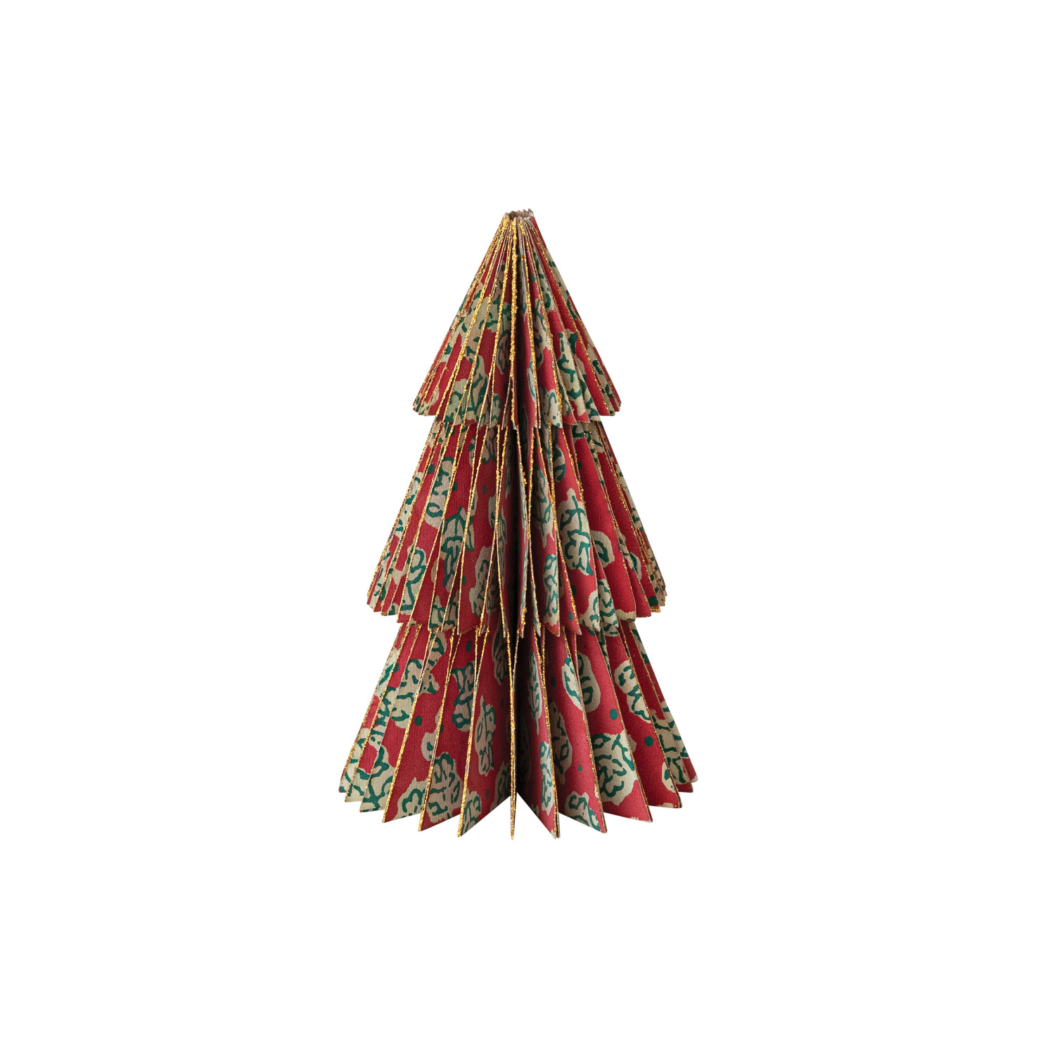 Catalog Name: 3-1/2" Round x 5"H Handmade Recycled Block Printed Paper Folding Honeycomb Tree w/ Vintage Pattern & Gold Glitter Edge, Multi Color
