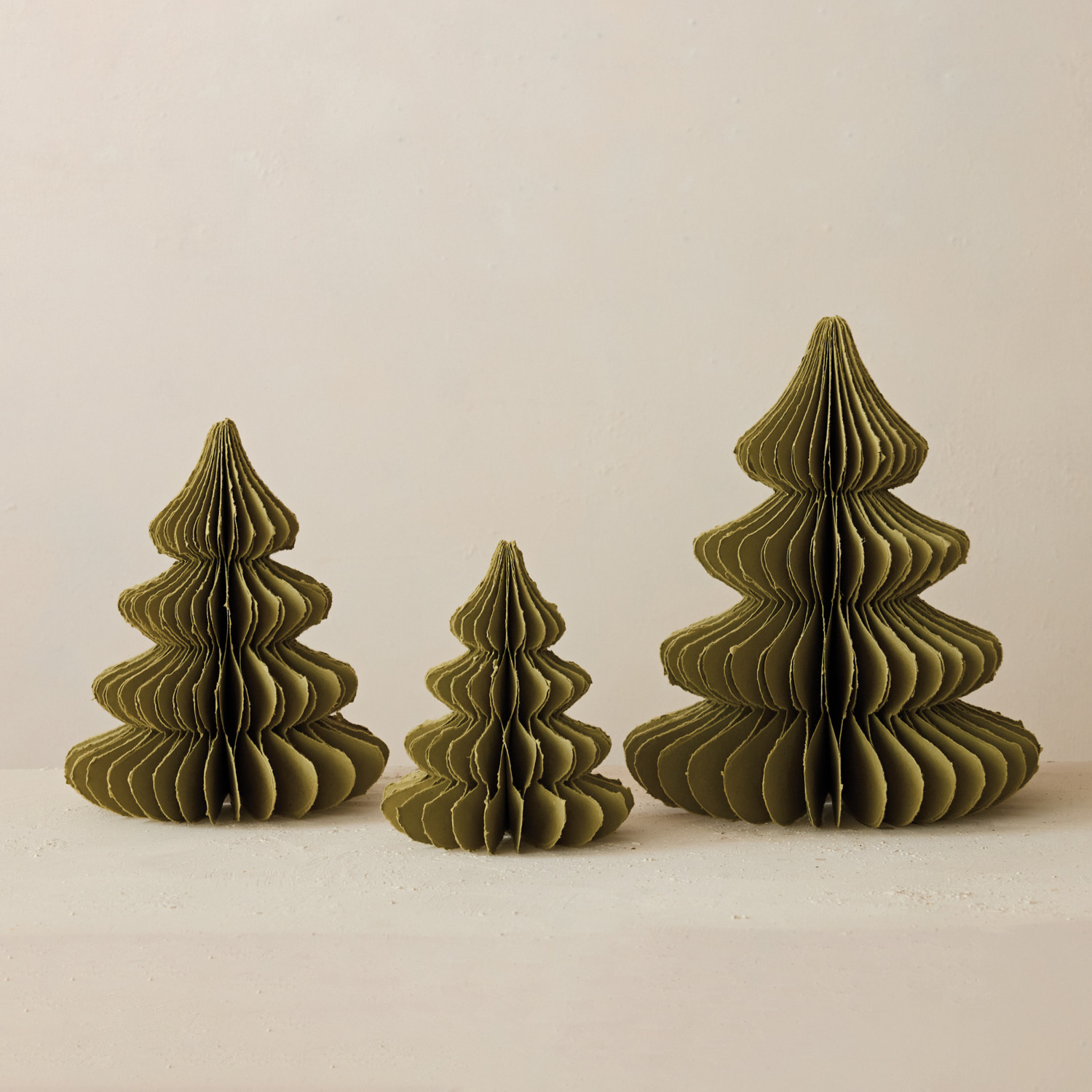 Handmade Recycled Paper Folding Honeycomb Tree with Torn Edges, Olive Color