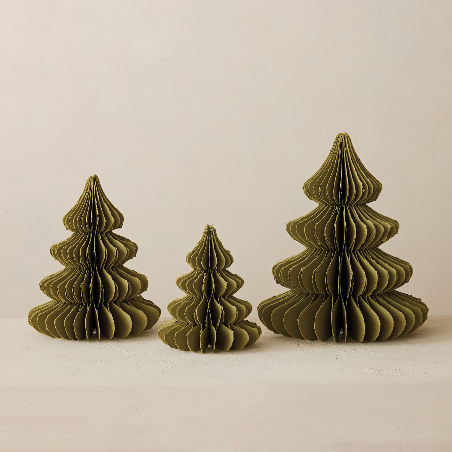 Handmade Recycled Paper Folding Honeycomb Tree with Torn Edges, Olive Color