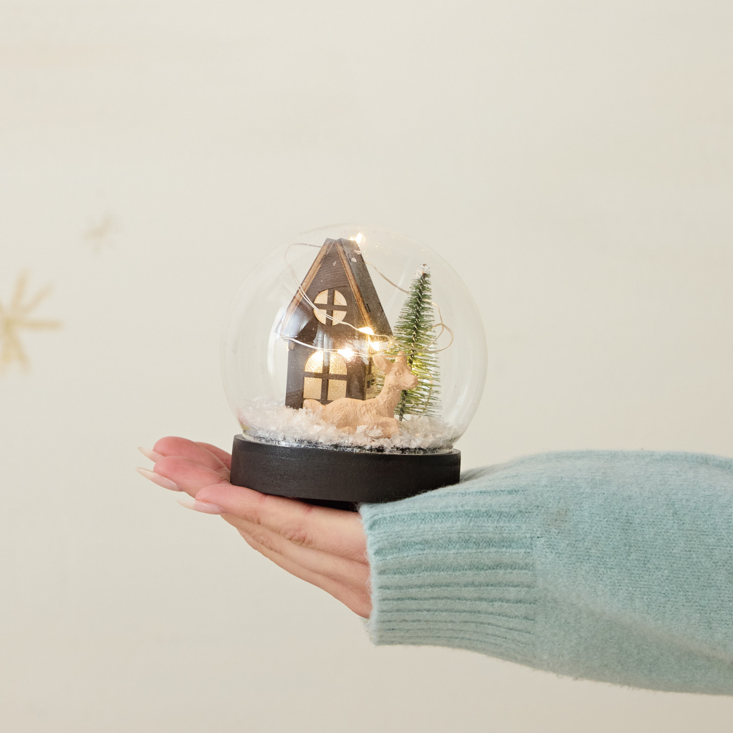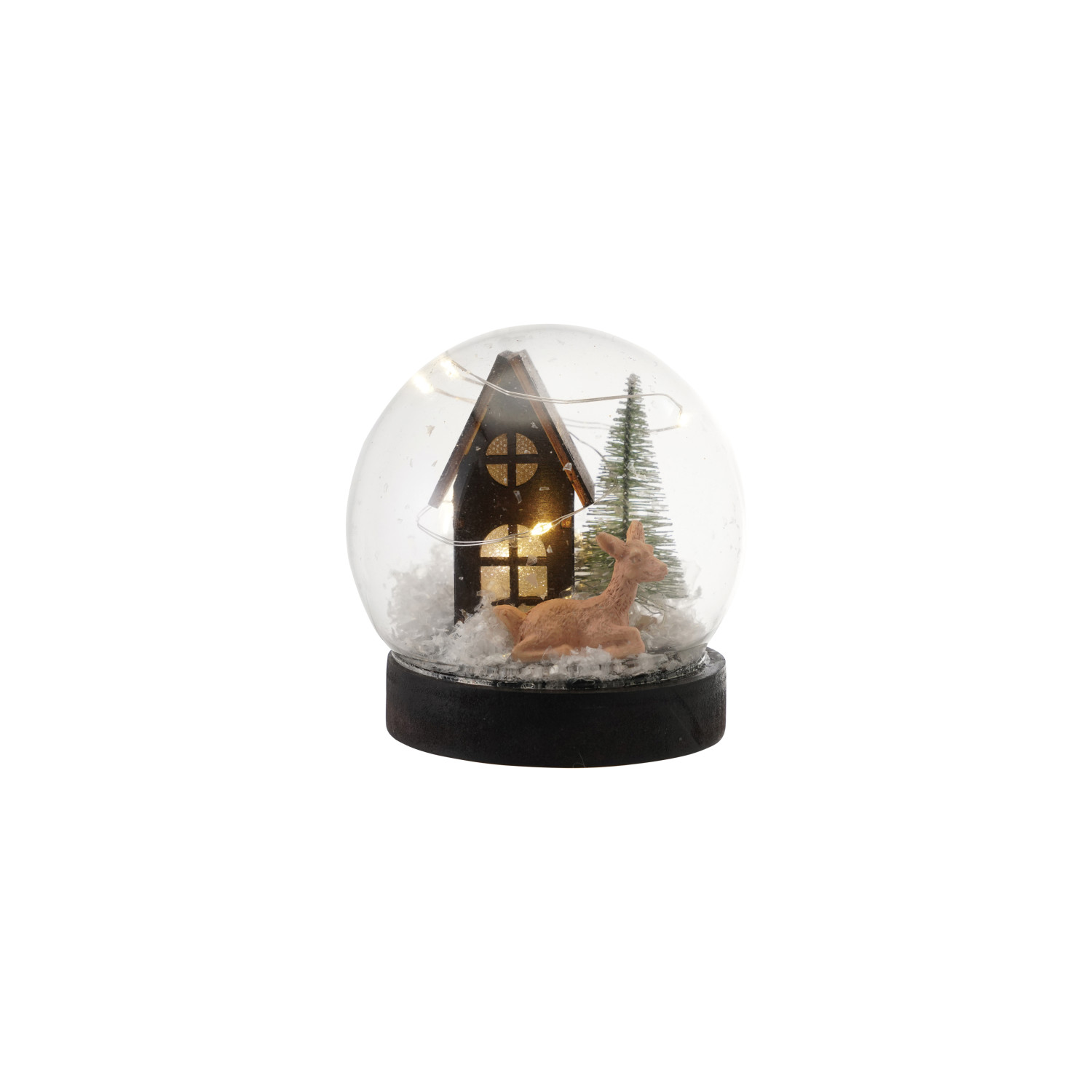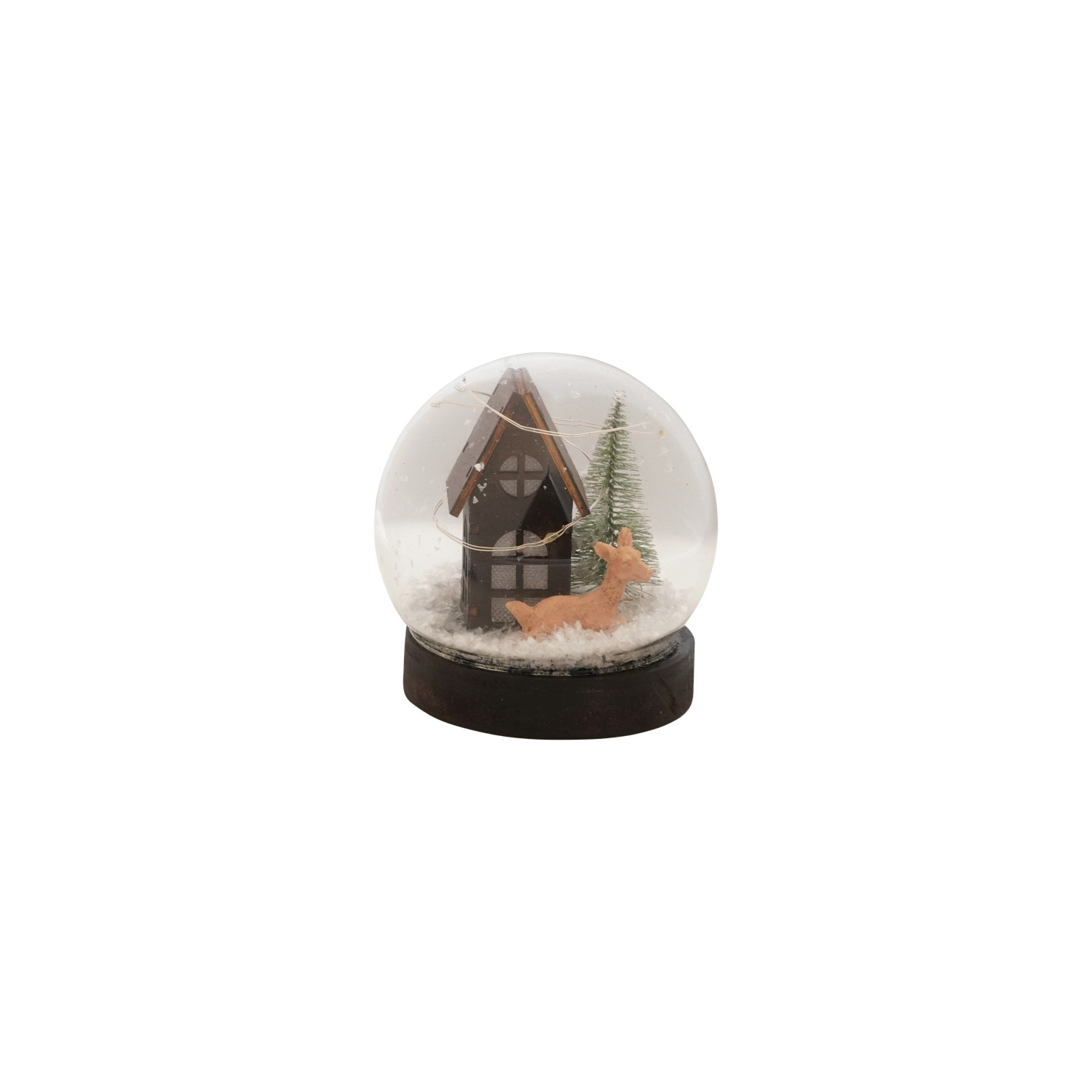 Catalog Name: 4" Round x 4"H Glass Snow Globe w/ Cabin Scene & LED Light, Multi Color (Requires 3-AAA Batteries)