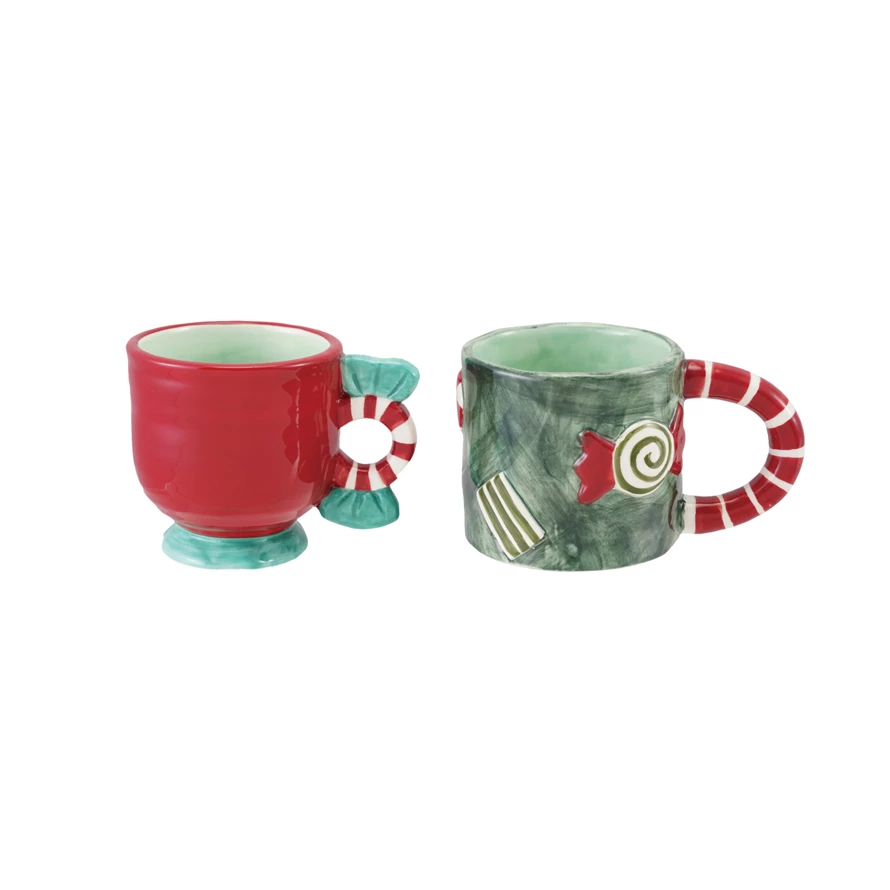 8 oz. Hand-Painted Ceramic Mug with Candy Shaped Handle/Design, 2 Styles ©