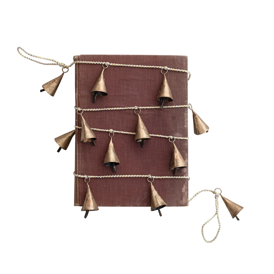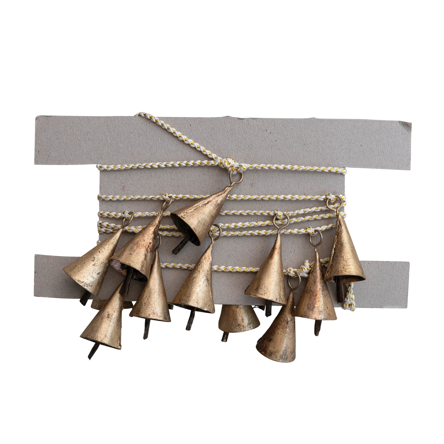 Metal Bell Garland with White & Gold Cord, Gold Finish