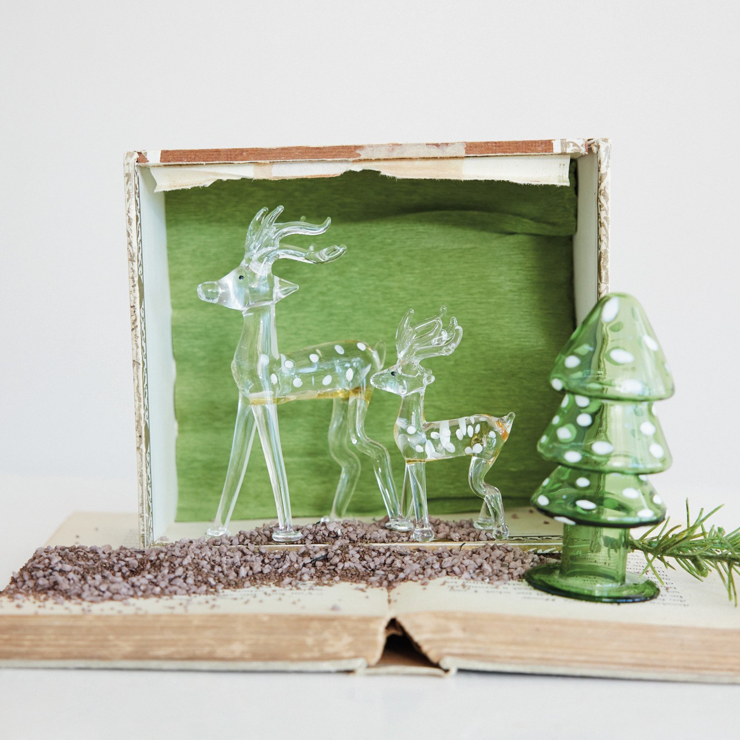 Catalog Name: 1-3/4"L x 1"W x 3-1/2"H Hand-Blown Art Glass Deer, Multi Color