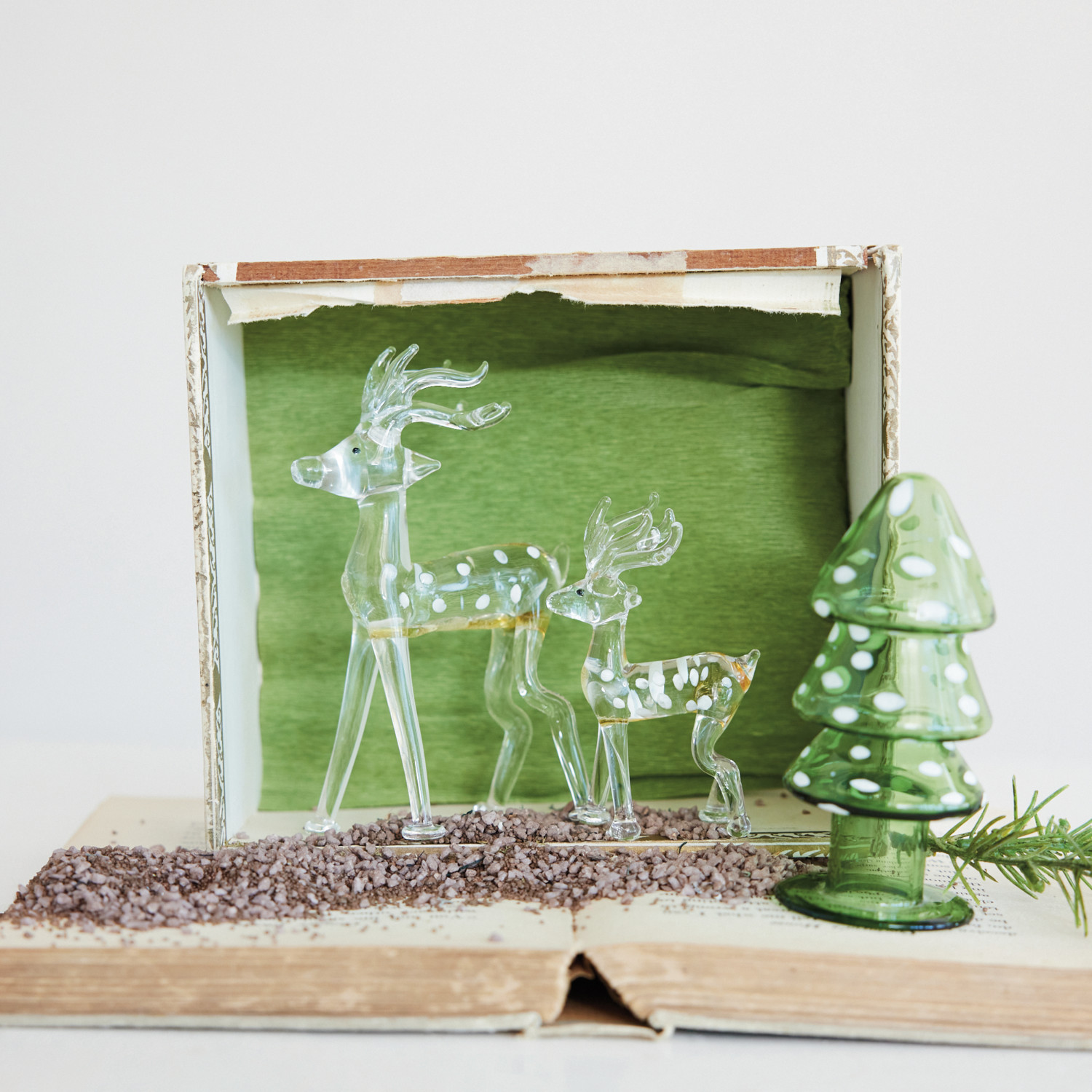 Catalog Name: 3"L x 1-1/2"W x 5"H Hand-Blown Art Glass Deer, Multi Color
