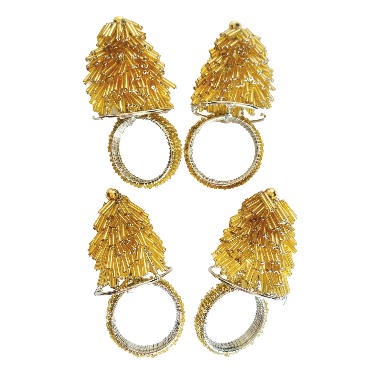 Handmade Metal & Glass Beaded Tree Napkin Rings, Gold Finish, Set of 4 Tied with Jute