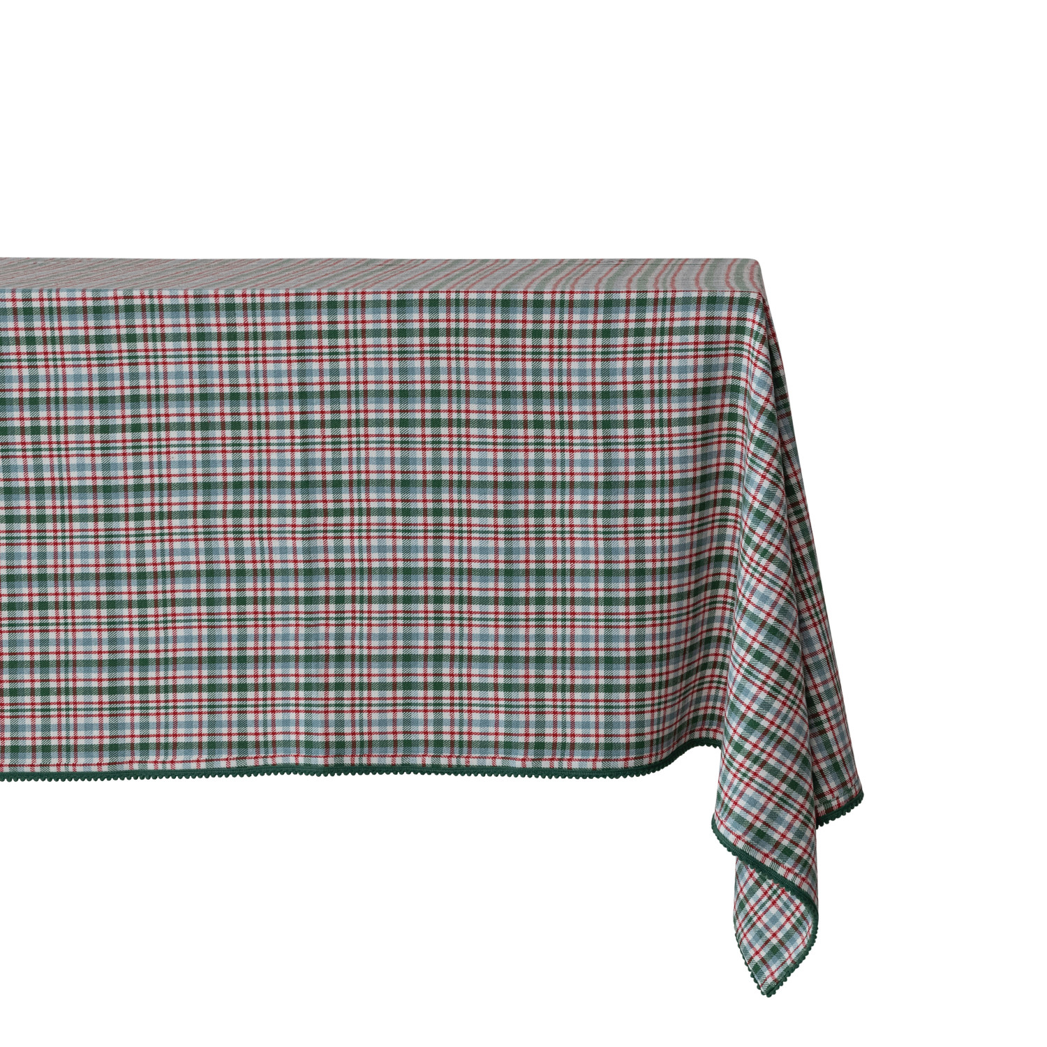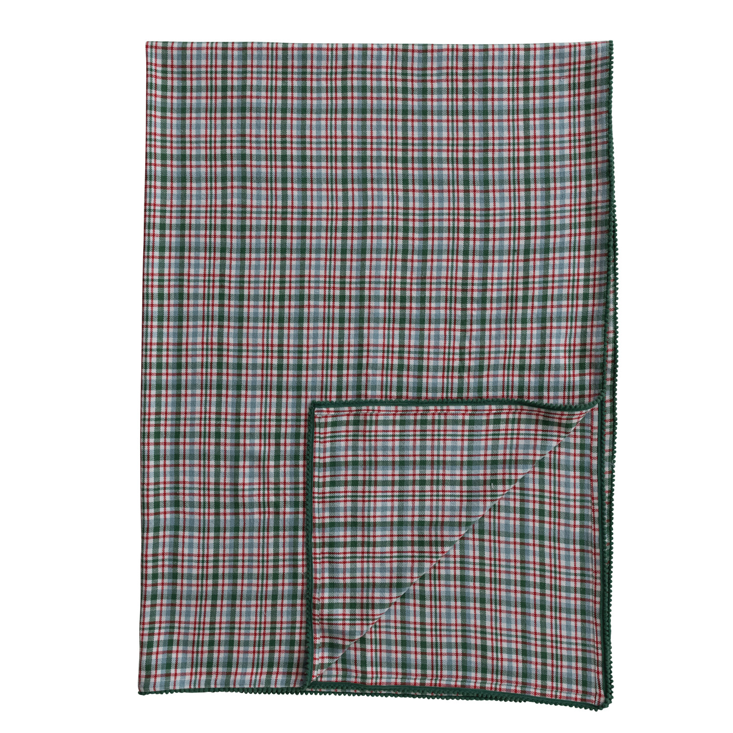 84"L x 60"W Woven Cotton Table Cloth with Plaid Pattern & Mini Pom Pom Trim