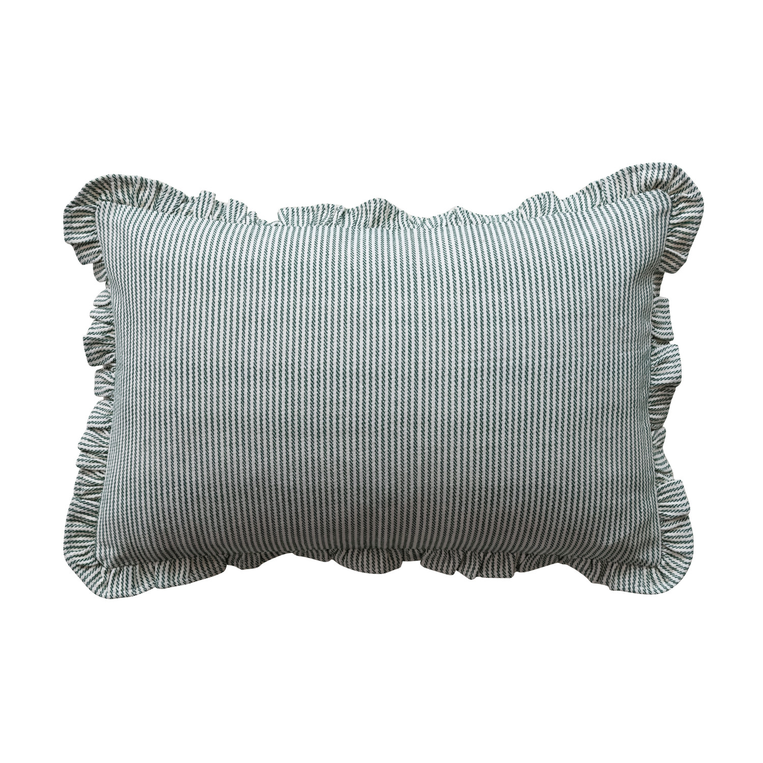 Woven Cotton Striped Lumbar Pillow with Ruffle & Green