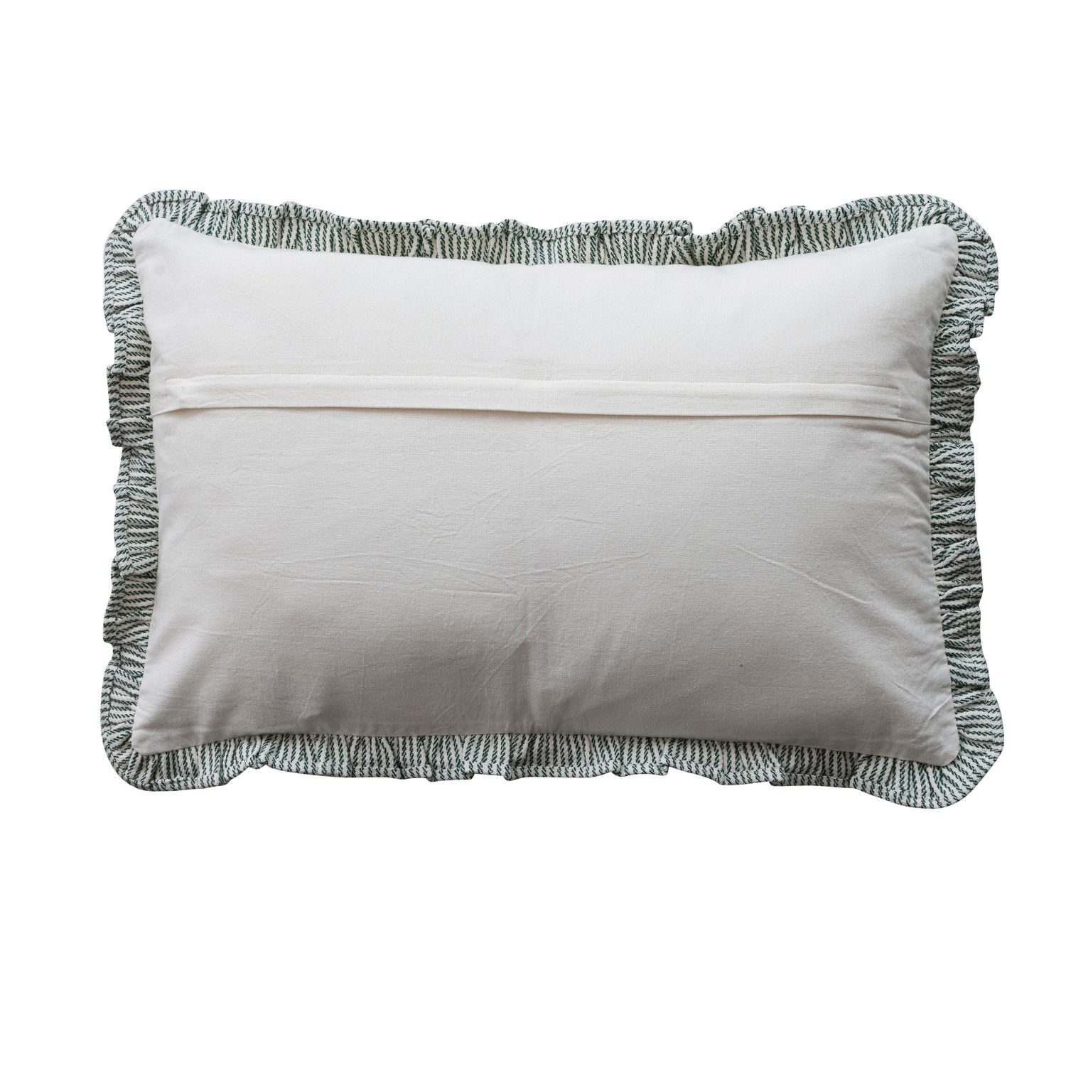 Catalog Name: 24"L x 16"H Woven Cotton Striped Lumbar Pillow w/ Ruffle, Cream Color & Green