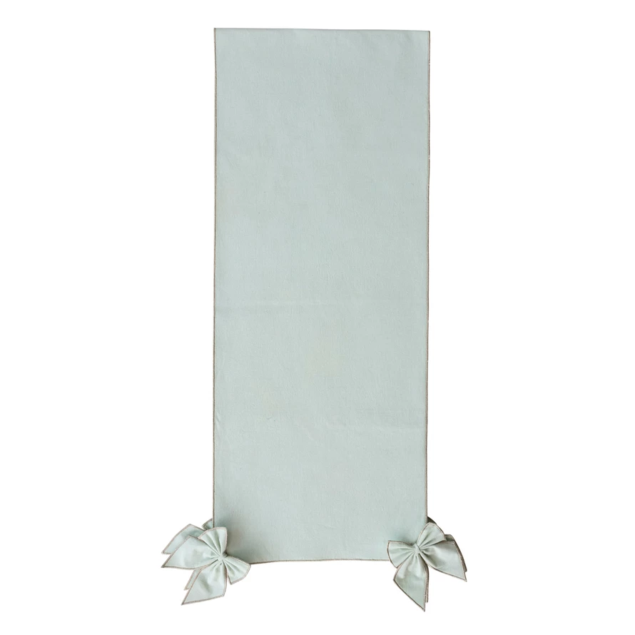 Catalog Name: 72"L x 14"W Cotton & Linen Table Runner w/ Detachable Bows & Metallic Silver Thread Stitched Edges, Mint Color