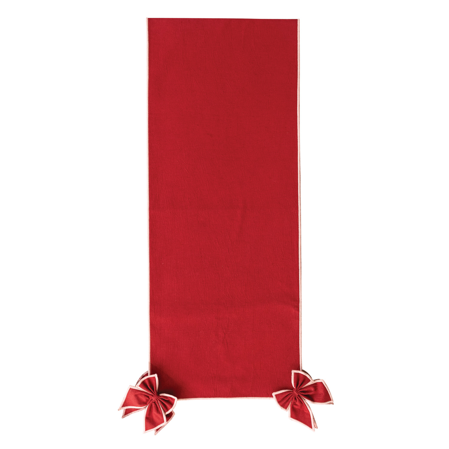 Catalog Name: 72"L x 14"W Cotton & Linen Table Runner w/ Detachable Bows & Pink Stitched Edge, Red