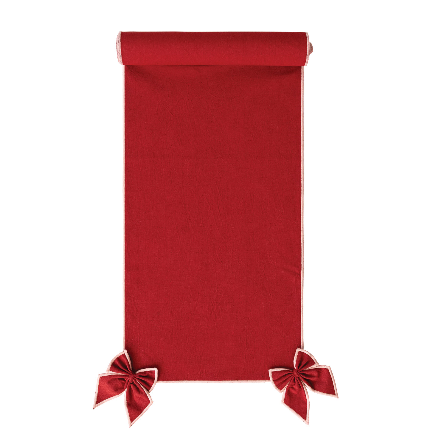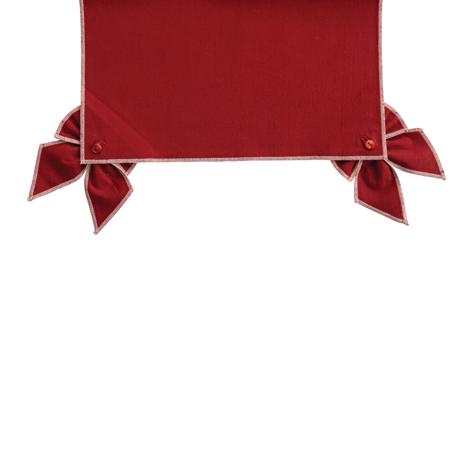 Cotton & Linen Table Runner with Detachable Bows & Pink Stitched Edge, Red