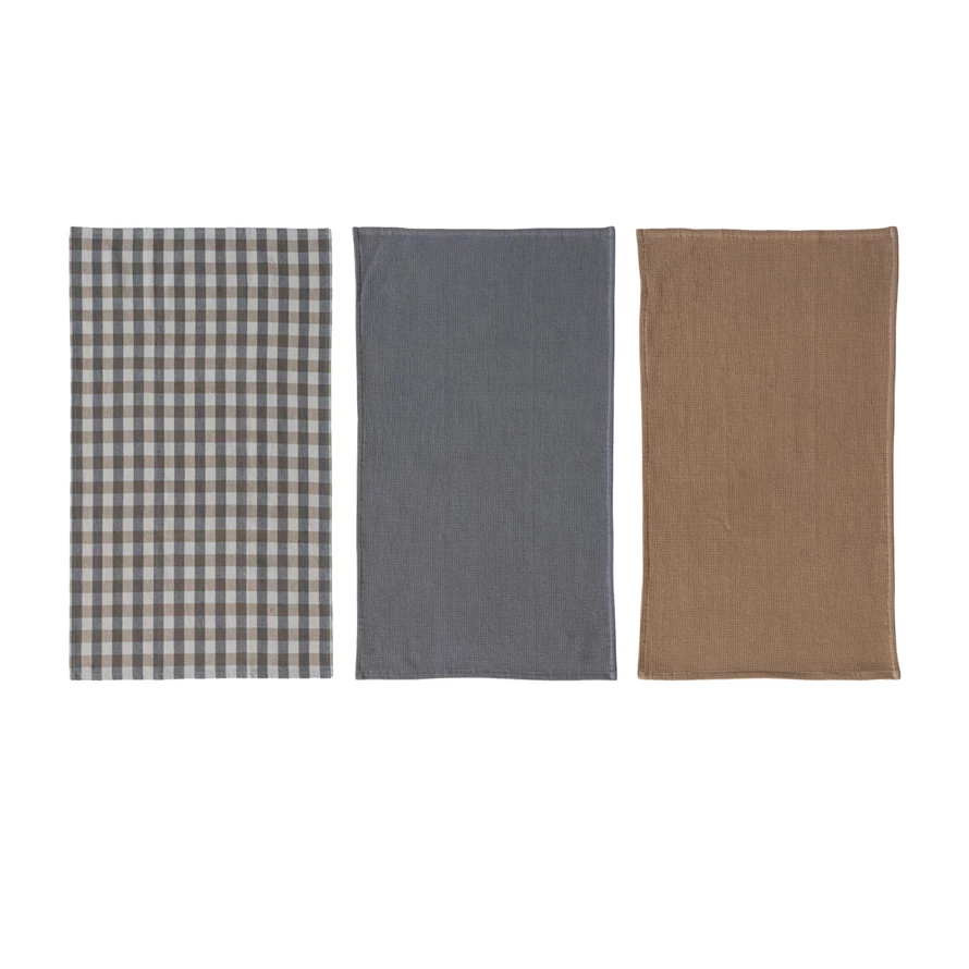Woven Cotton Waffle Weave Tea Towels, Set of 3 Tied with Jute