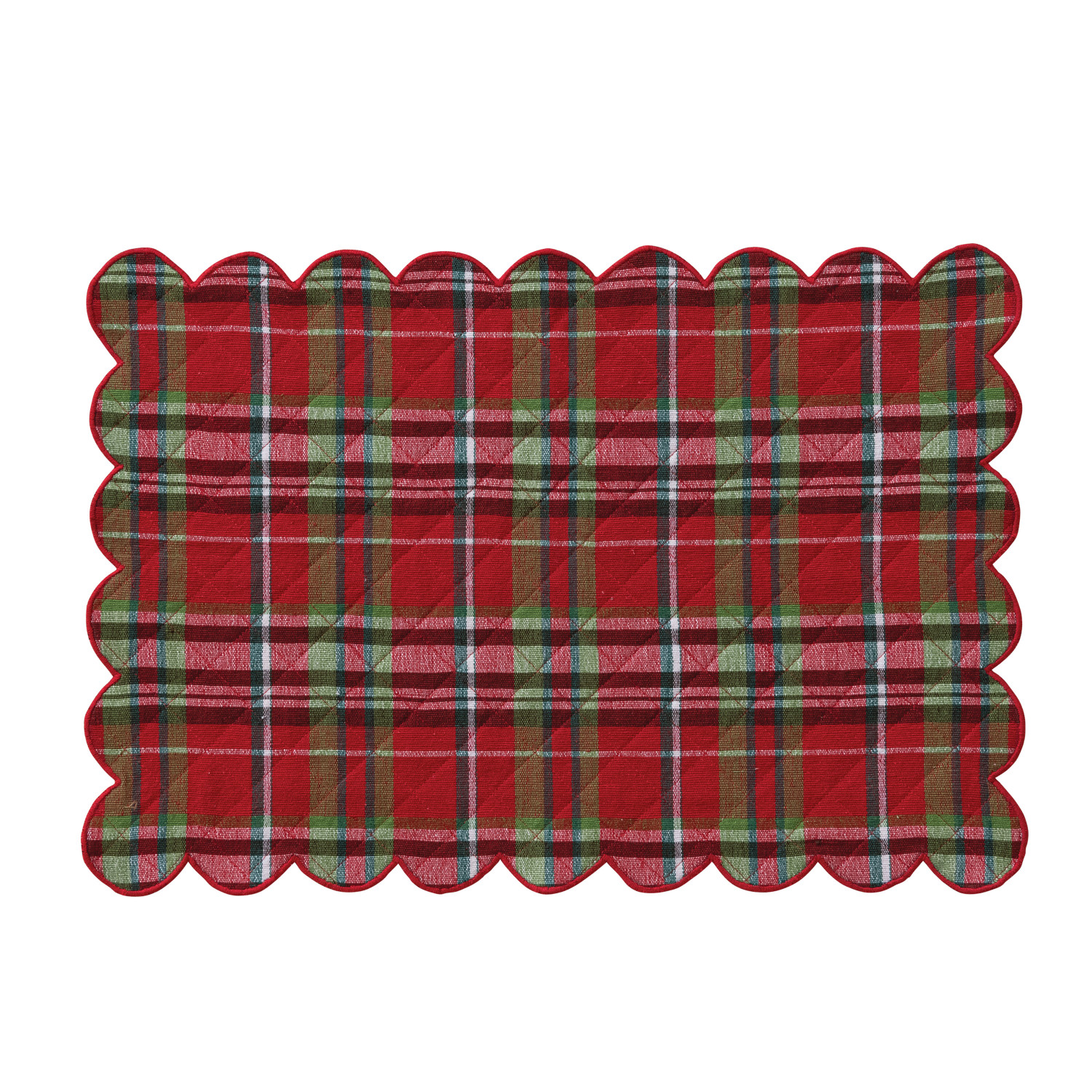 Cotton Quilted Scalloped Placement with Tartan Plaid Pattern & Stitched Edge