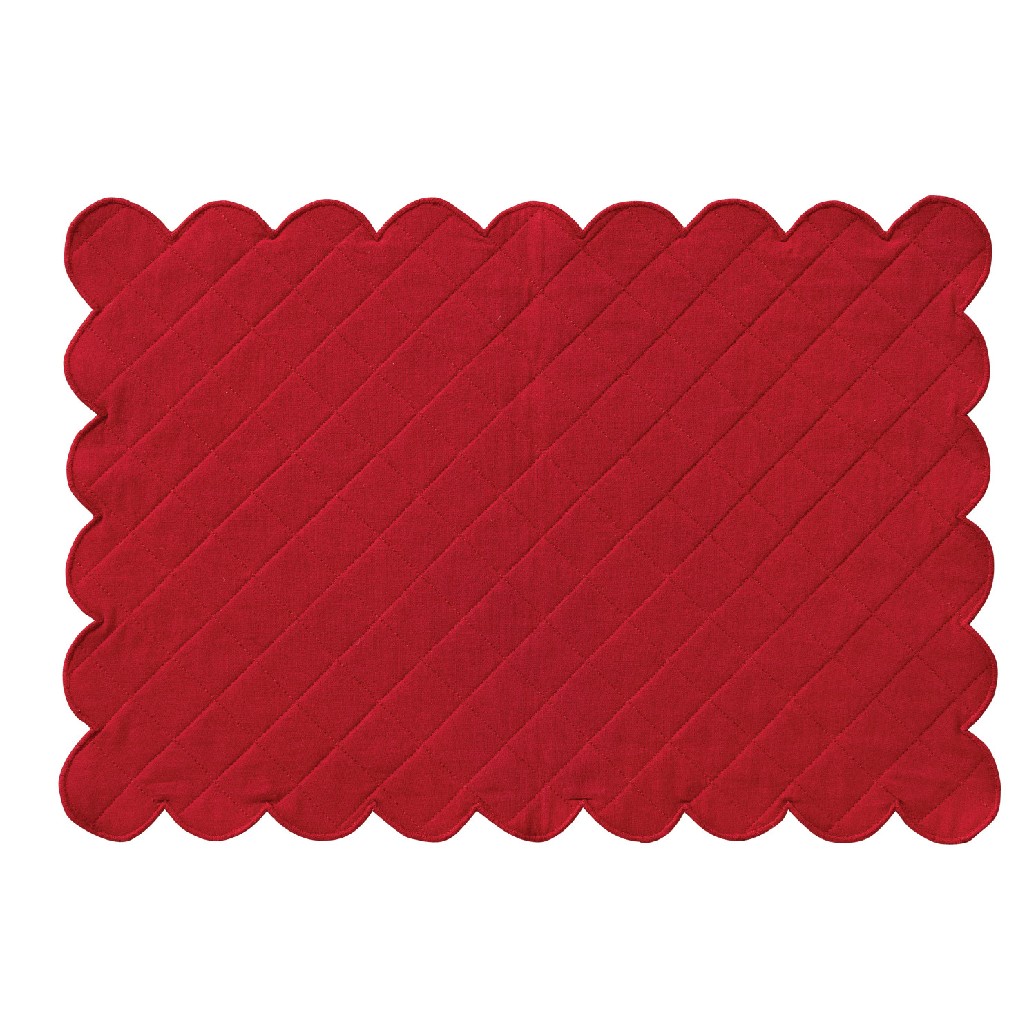Catalog Name: 19"L x 13"W Cotton Quilted Scalloped Placement w/ Tartan Plaid Pattern & Stitched Edge, Multi Color