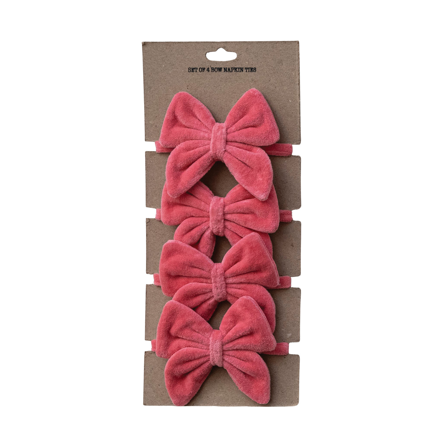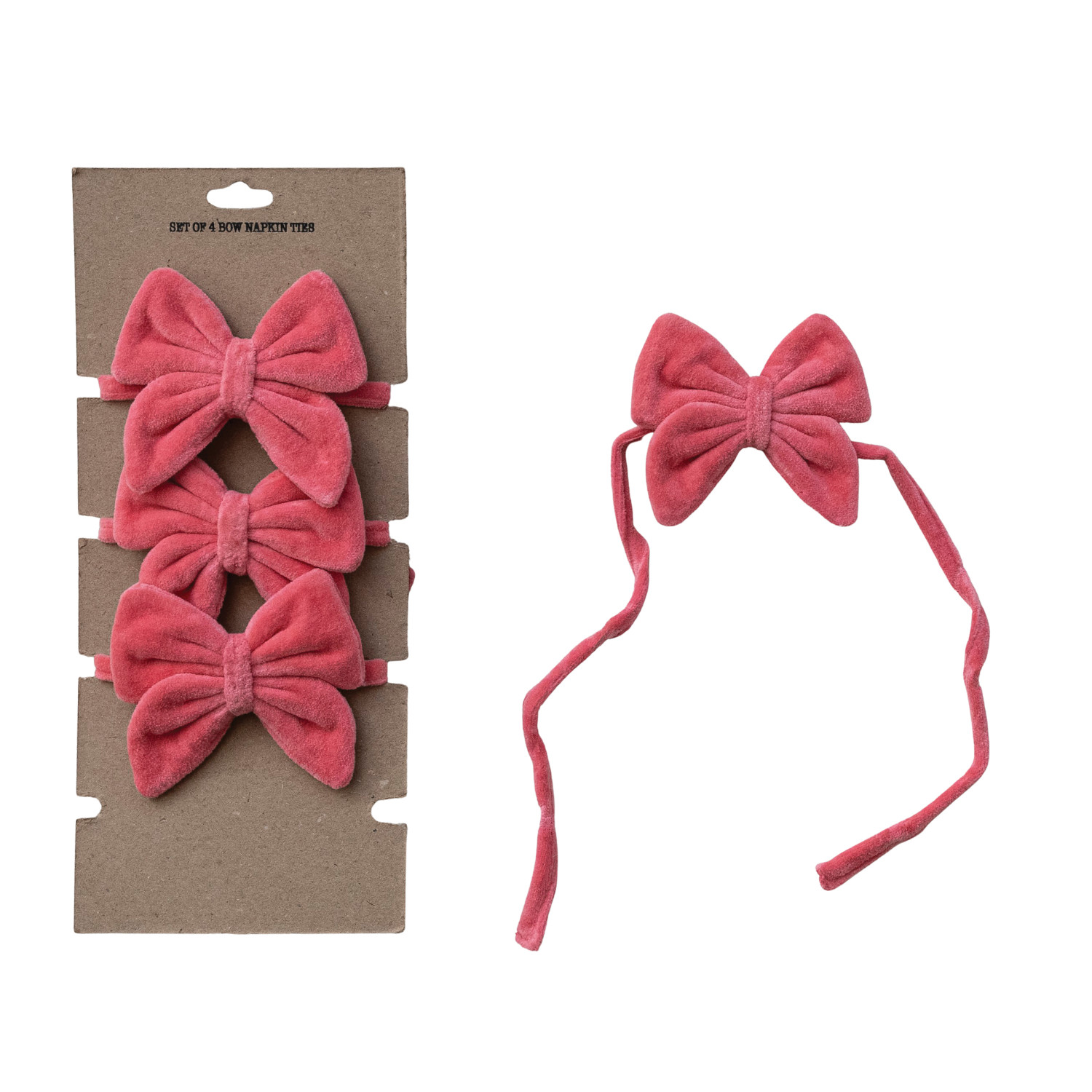 Cotton Velvet Bow Napkin Ties, Pink, Set of 4 on Card