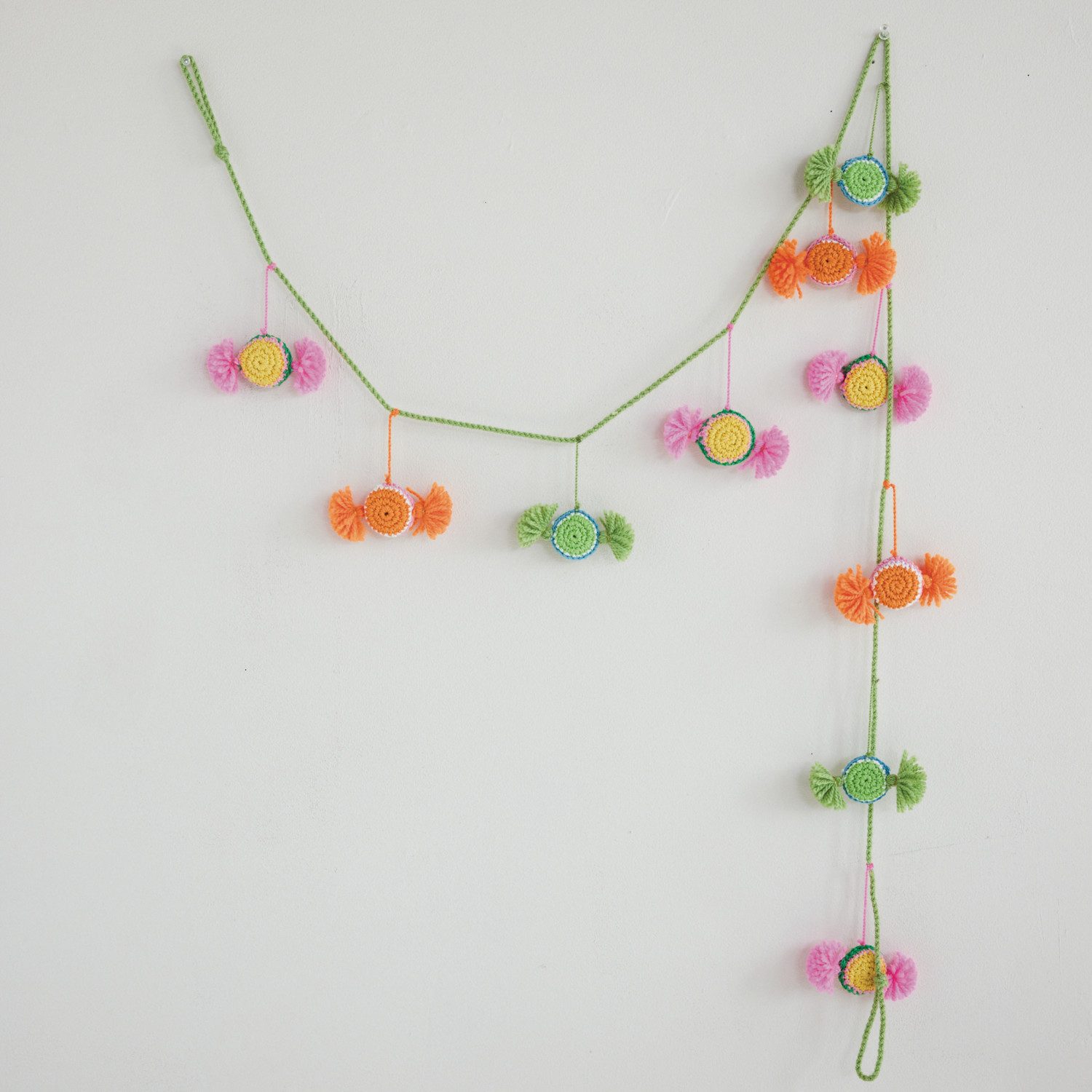 Catalog Name: 72"L x 4"H Handmade Wool Crocheted Candy Garland, Multi Color