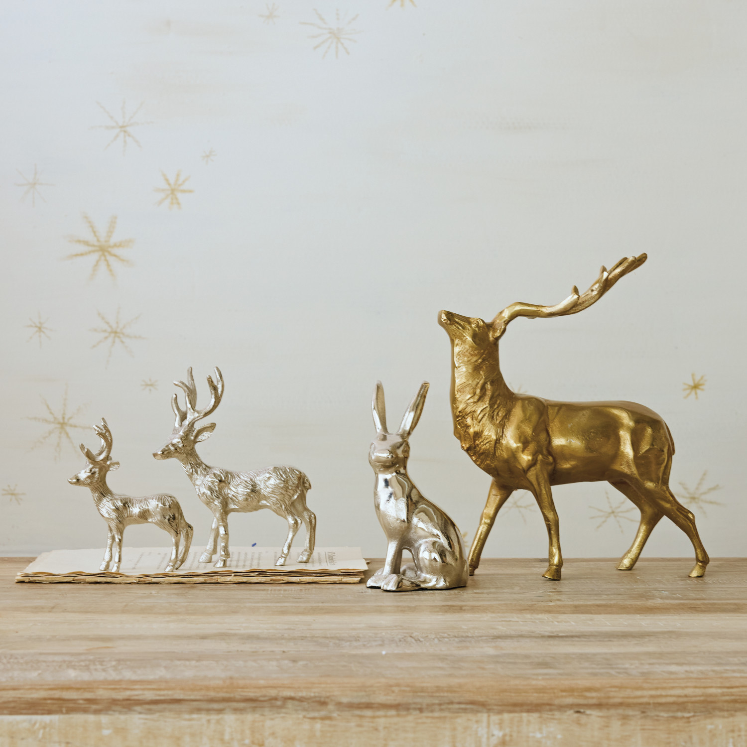 Catalog Name: 11"L x 5"W x 13-1/2"H Cast Aluminum Deer, Gold Finish, Truck Ship