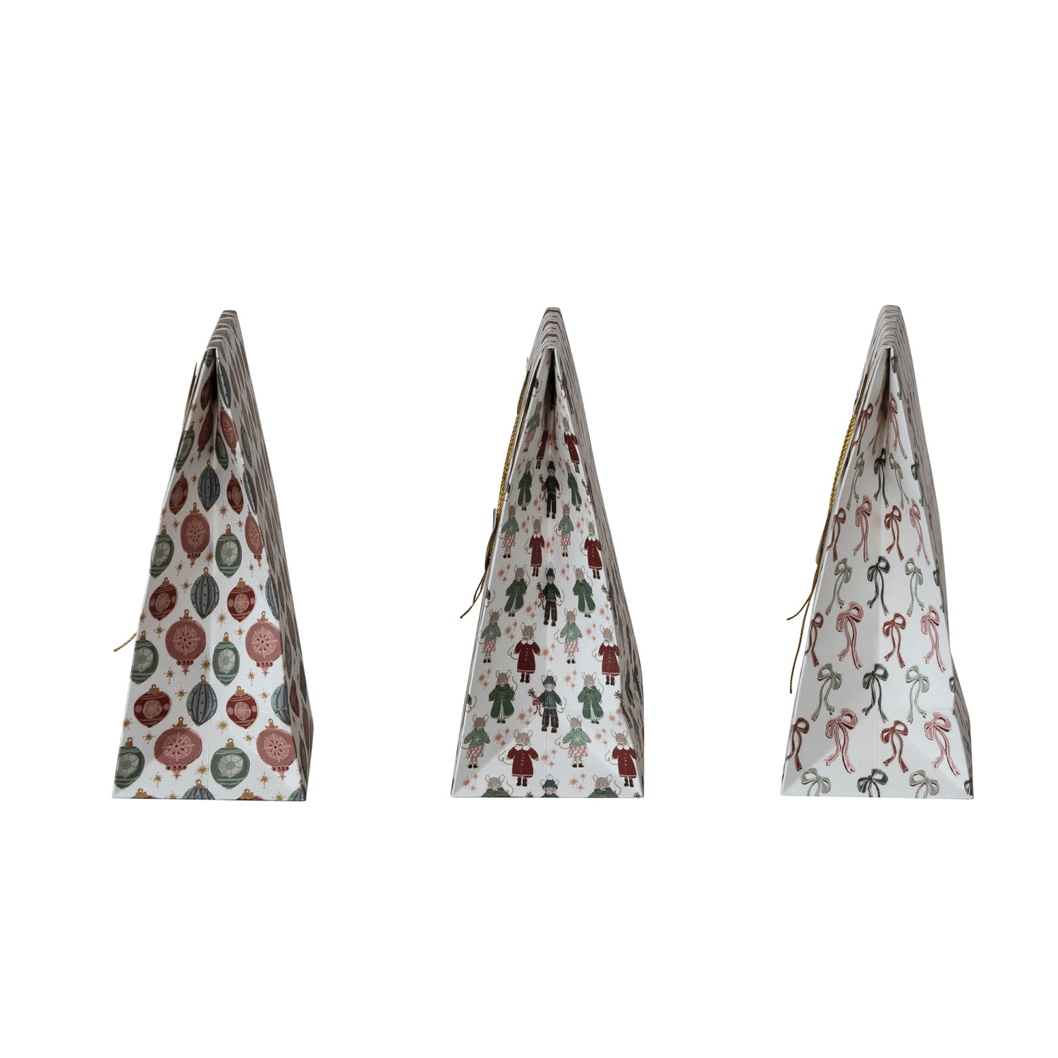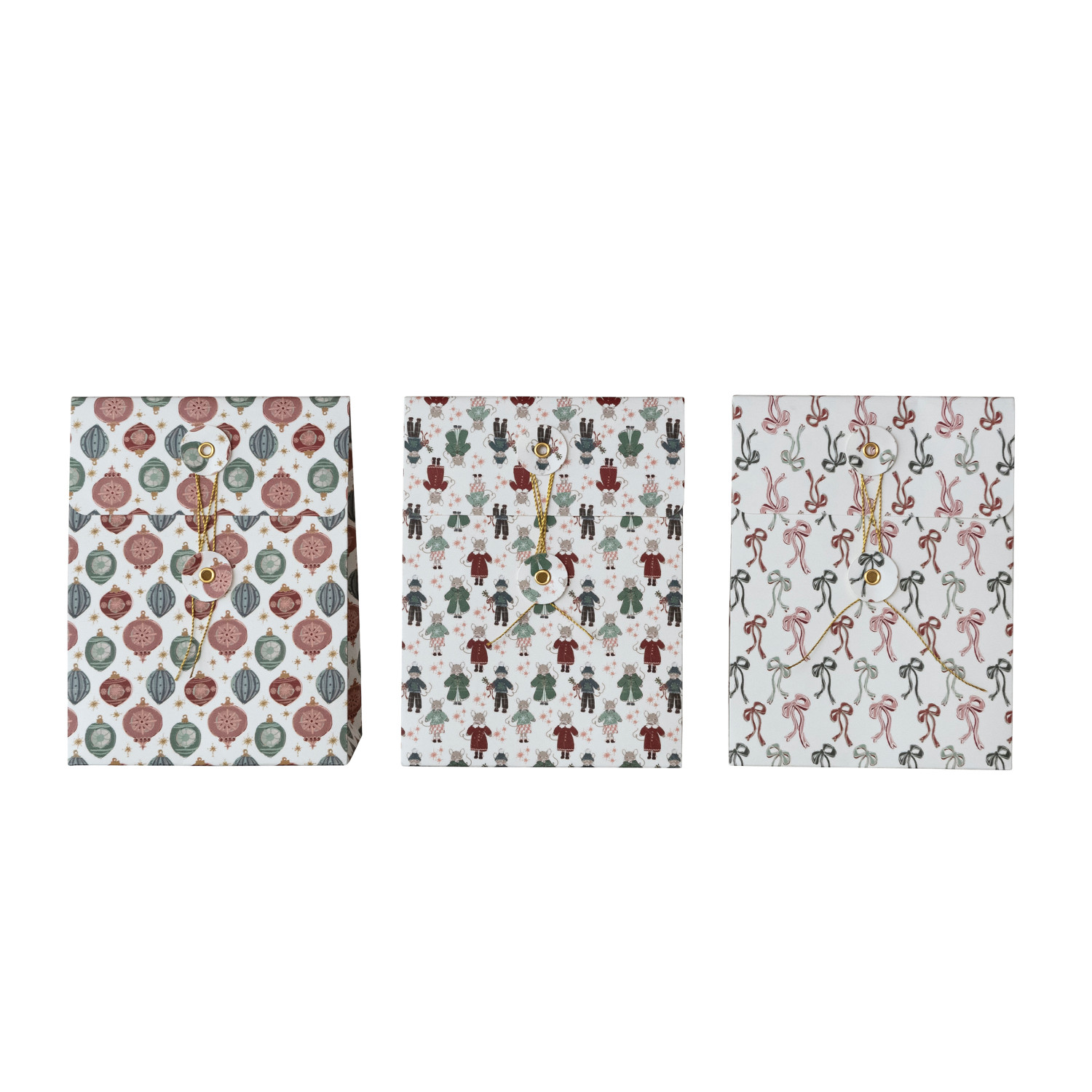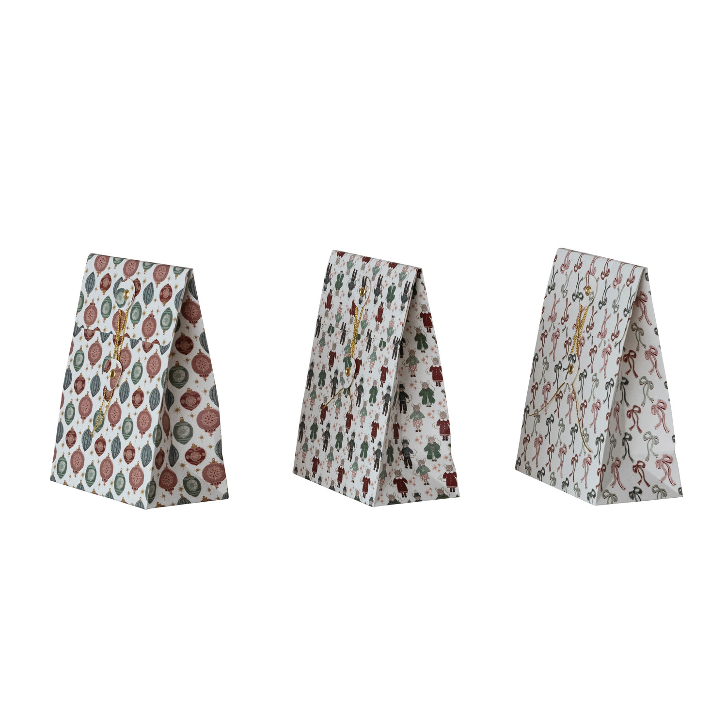 Catalog Name: 6-1/2"L x 3-1/2"W x 8-1/2"H Handmade Printed Recycled Paper Gift Bags w/ Holiday Patterns & Closures, Multi Color, 3 Styles ©