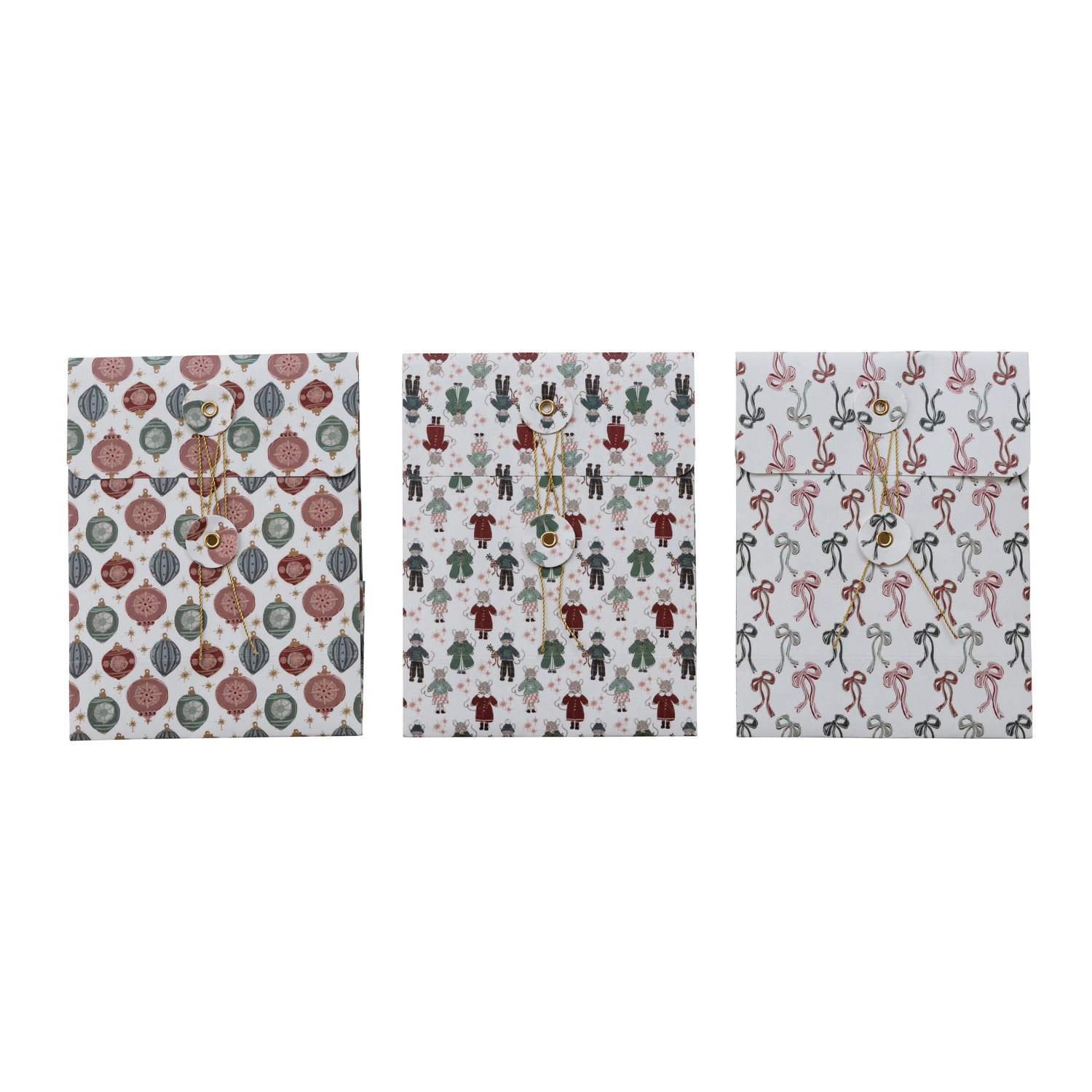 Handmade Recycled Paper Gift Bags with Holiday Patterns & Closures, 3 Styles ©