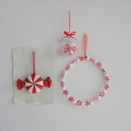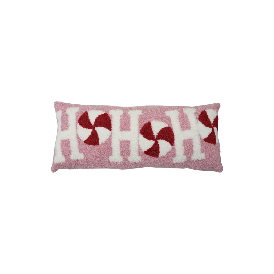 Cotton Terry Cloth Lumbar Pillow with Candy "Ho Ho Ho", Pink, White & Red