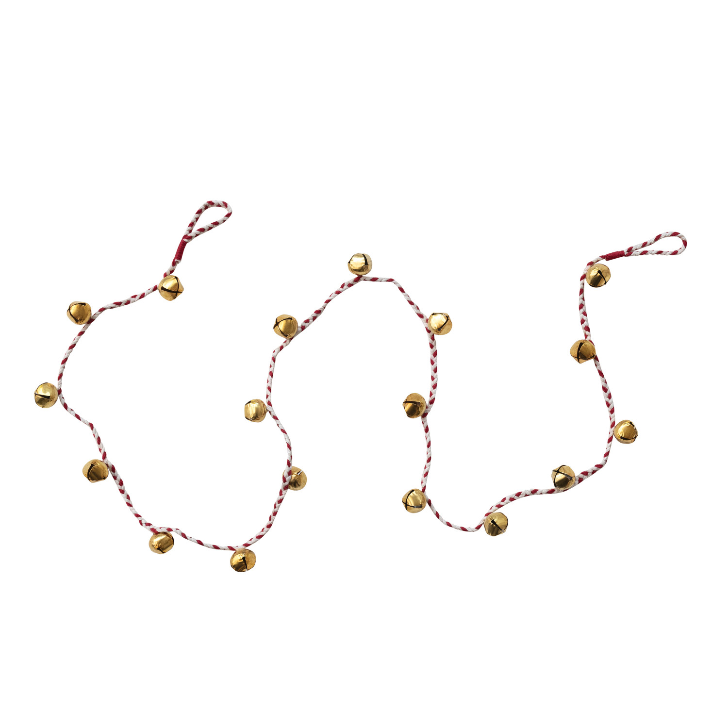 Metal Jingle Bell Garland with Red & White Braided Cord, Gold Finish