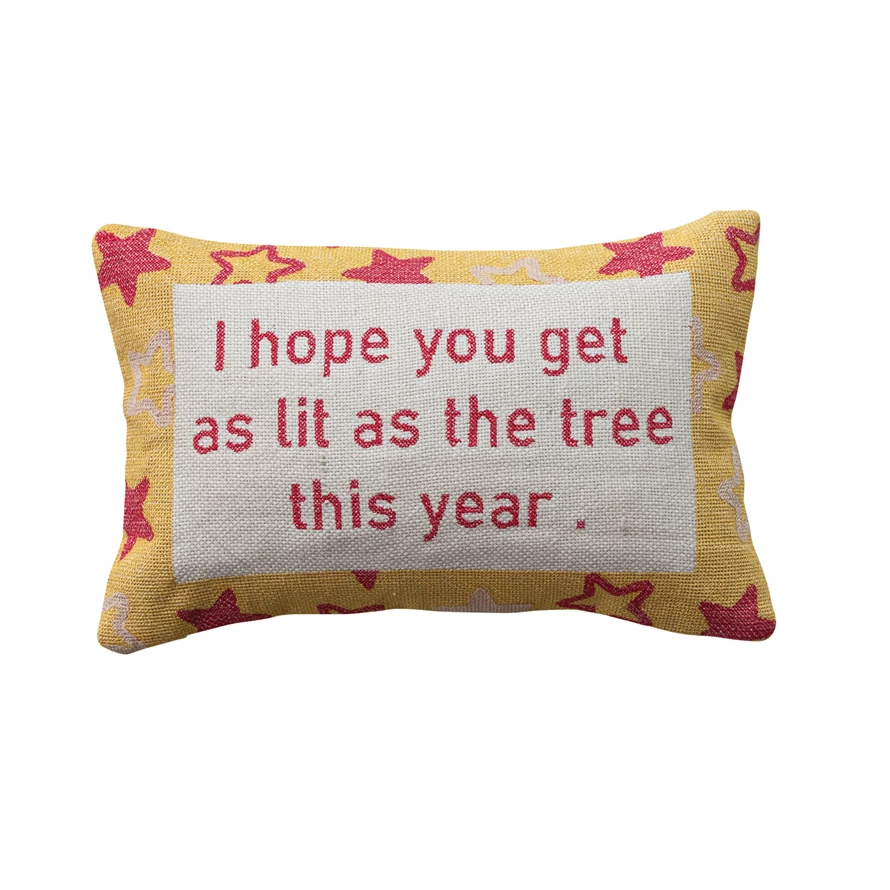 Cotton Embroidered Lumbar Pillow with Star Pattern "I Hope You Get As Lit..."