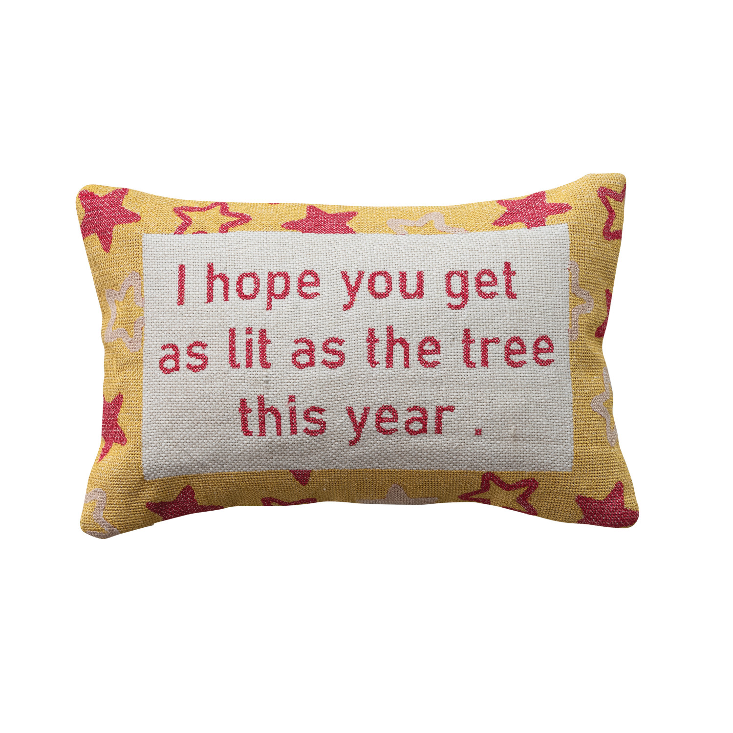 Catalog Name: 14"L x 9"H Cotton Embroidered Lumbar Pillow w/ Star Pattern "I Hope You Get As Lit...", Yellow, Red & Natural