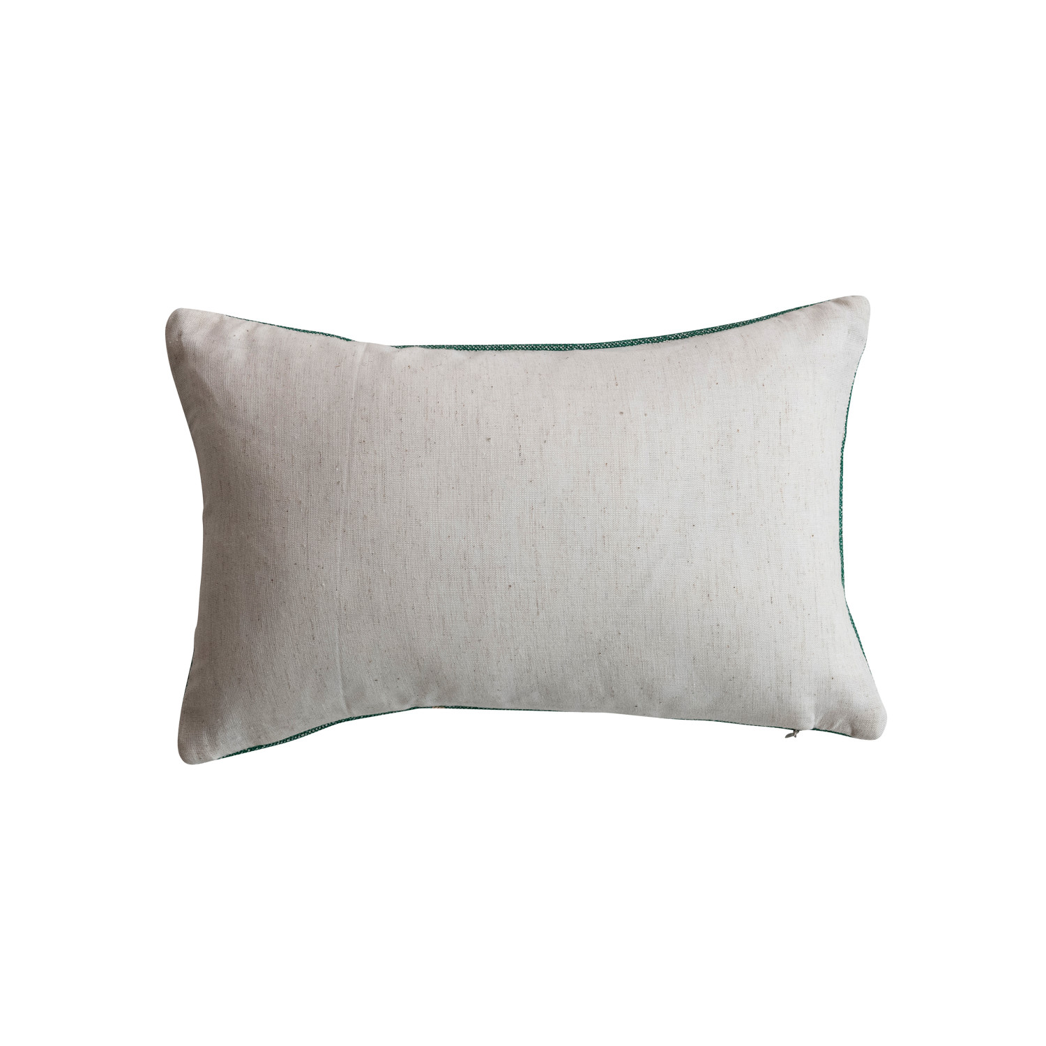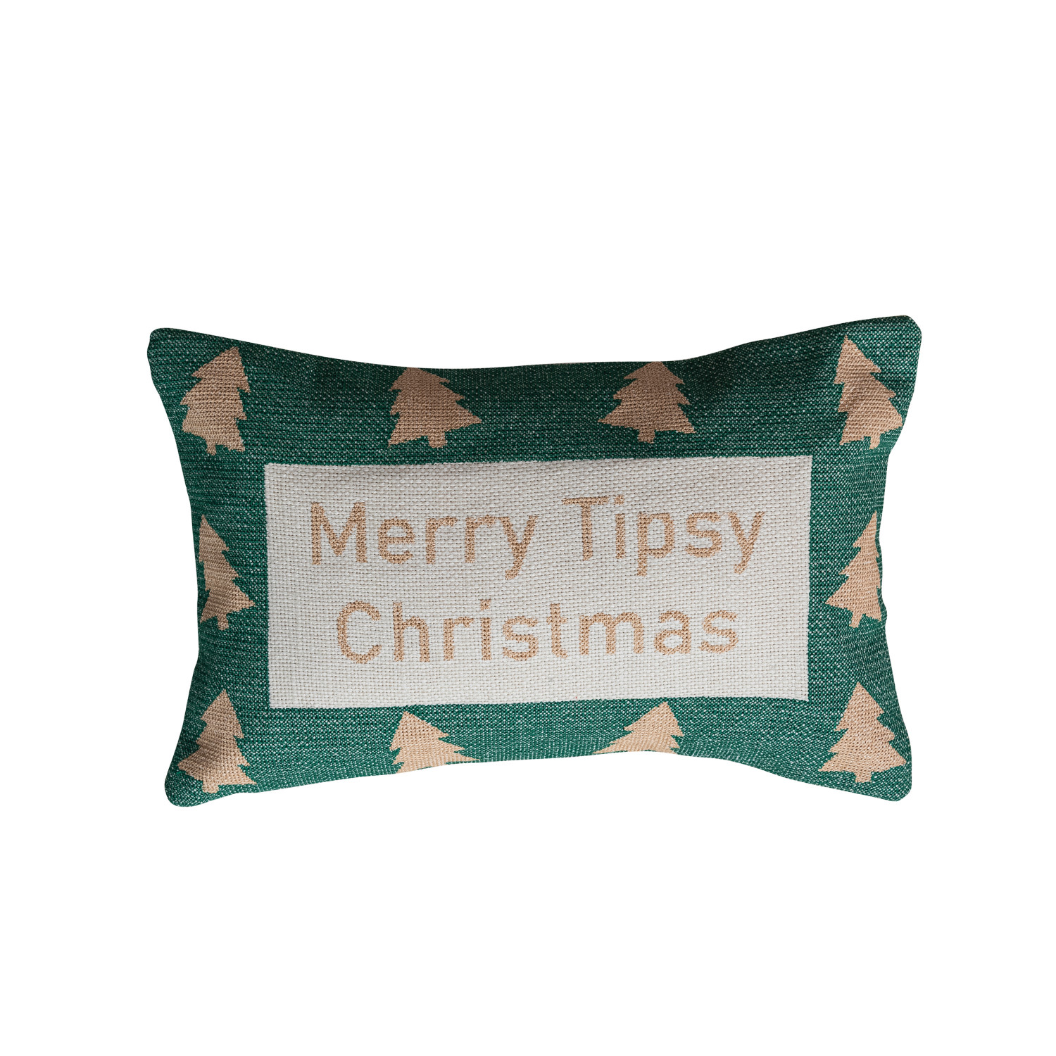Catalog Name: 14"L x 9"H Cotton Embroidered Lumbar Pillow w/ Tree Pattern "Merry Tipsy Christmas", Green, Beige & Natural
